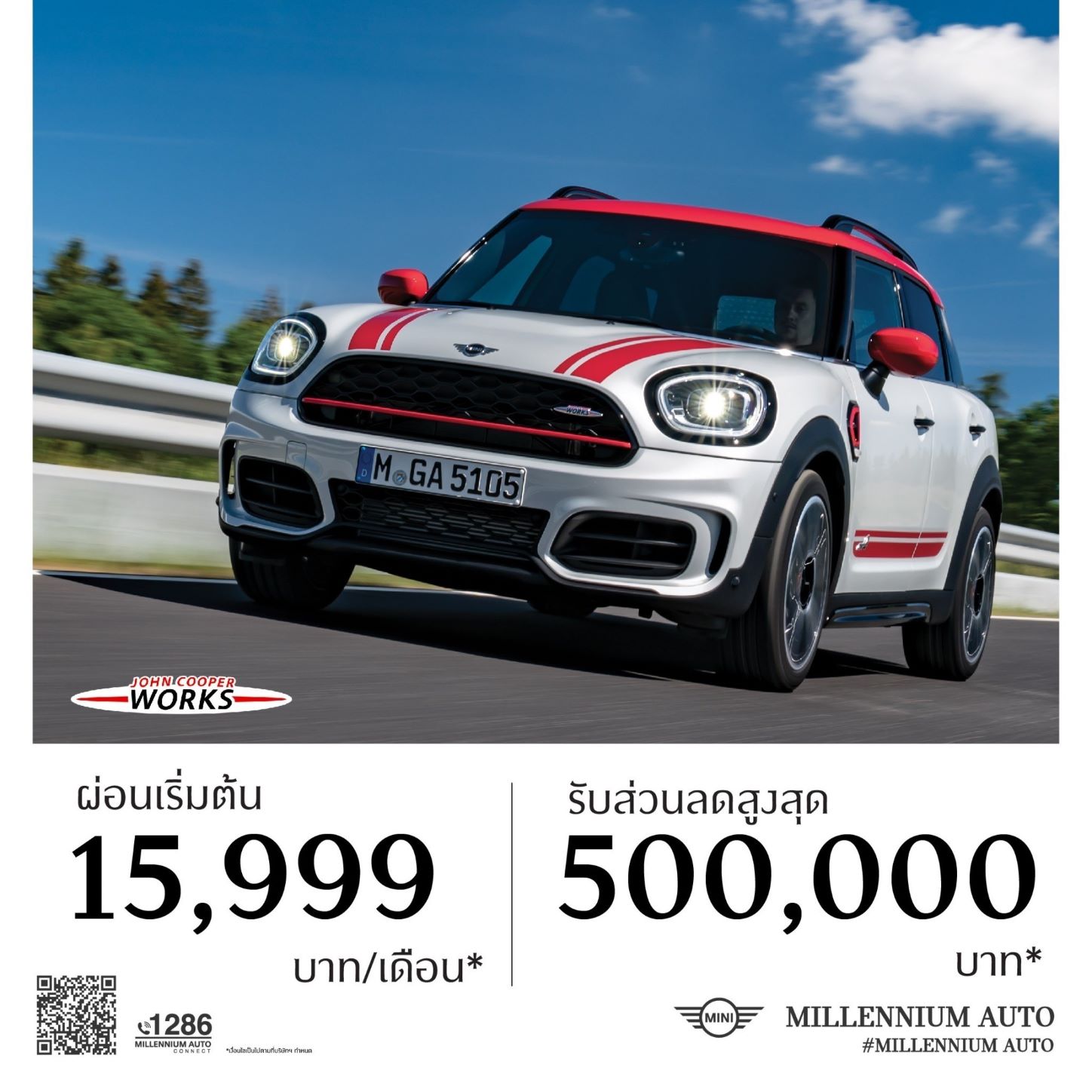 มินิ มิลเลนเนียม ออโต้ จัดแสดงพร้อมจำหน่ายรถผู้บริหาร มินิ ป้ายแดง ไมล์น้อย หลากรุ่น นำโดย มินิ จอห์น คูเปอร์ เวิร์คส์ คันทรี่แมน (MINI JCW Countryman) ราคาเพียง 3.12 ล้านบาท พร้อมข้อเสนอพิเศษมากมาย