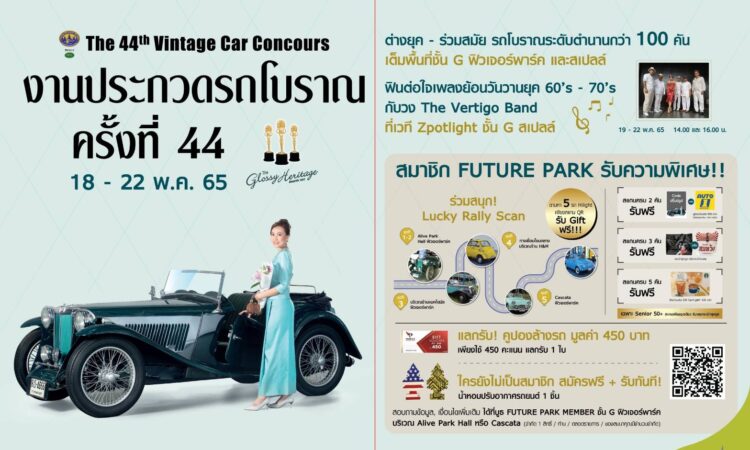 เชิญชม “งานประกวดรถโบราณ ครั้งที่ 44” ณ ชั้น G ศูนย์การค้าฟิวเจอร์พาร์ค และสเปลล์ ตั้งแต่วันนี้-22 พฤษภาคม 256