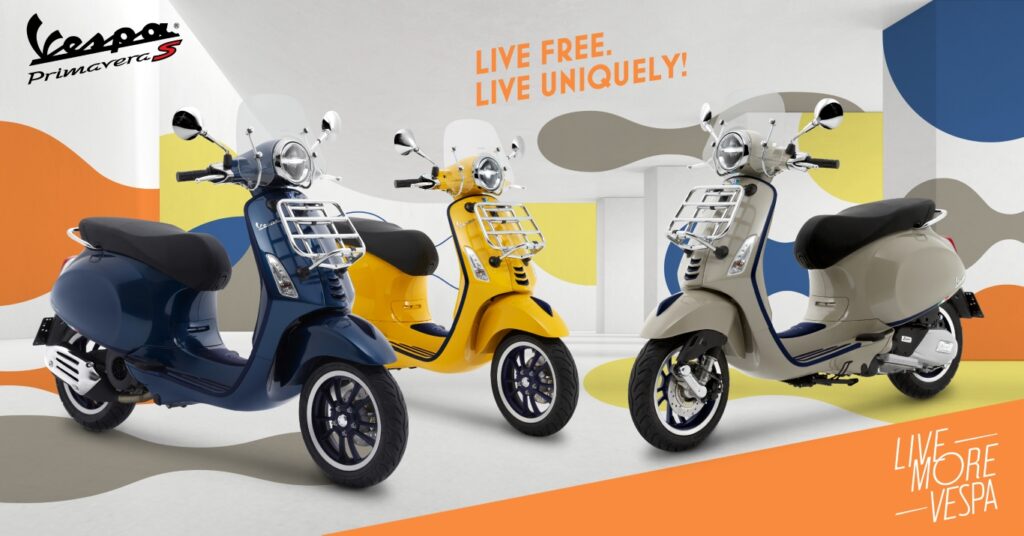 เวสป้า เพิ่มอรรถรสผ่านเฉดสีให้กับทุกการขับขี่อีกครั้ง ภายใต้คอนเซปต์ “Tell Your Story with Colours” ถ่ายทอดเรื่องราวของคุณผ่านความหลากหลายของสีสัน ไปกับเวสป้าไอคอนนิกสกู๊ตเตอร์ทั้ง 4 รุ่น 8 เฉดสี โด่ดเด่นด้วยดีไซน์และสีสันที่สะท้อนเอกลักษณ์สุดพรีเมี่ยมบ่งบอกบุคลิก ตัวตน ความหลงใหล และสไตล์ของผู้เป็นเจ้าของ ลองมาสัมผัสประสบการณ์แห่งสีสันที่ไร้ขอบเขต กับ ‘เวสป้า’ ถ้าคุณพร้อมก็ออกไปโลดแล่นกันได้เลย