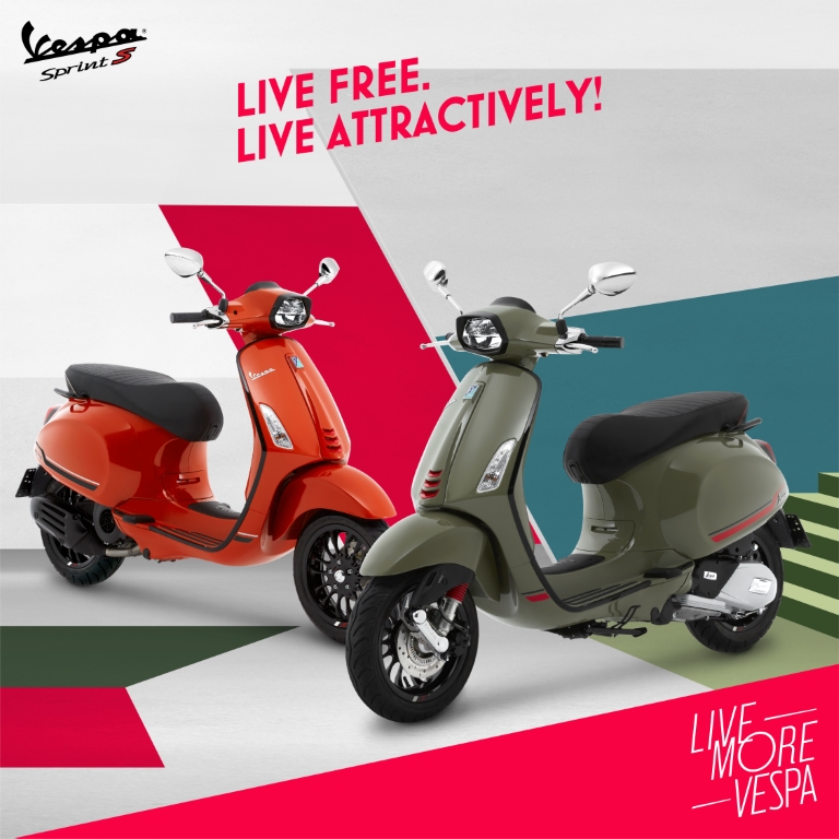 มาต่อที่สไตล์สปอร์ตกับ Vespa Sprint S 150 i-Get ABS สัมผัสกับความเร้าใจ ลุคสปอร์ต เด่นด้วยการตกแต่งเนกไทสีแดง ที่มาพร้อมเบาะหนังปั๊มลอน และสติกเกอร์ลายกราฟิกบริเวณตัวถัง และสัญลักษณ์ตัว S บริเวณล้อหน้า-หลัง ช่วยทำให้ล้อแม็กซ์สีดำมีความดุดันขึ้นไปอีกระดับ มาด้วยกัน 2 เฉดสี กับ สีเขียว Green Tenace สีแห่งแฟชั่นนำสมัย บ่งบอกความเป็น New Gen เรียบง่ายแต่เต็มเปี่ยมไปด้วยความโดดเด่น และสีส้ม Orange Tramonto บ่งบอกถึงความสนุก สดใสแต่ในขณะเดียวกันก็มีเสน่ห์ซ่อนเร้นที่น่าค้นหา สำหรับสกู๊ตเตอร์รุ่นนี้ราคา 136,900 บาท