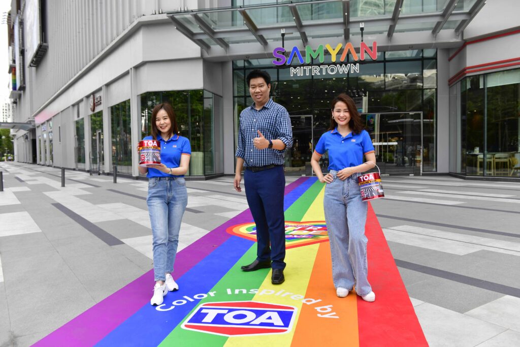 มาแล้ว บริษัท ทีโอเอ เพ้นท์ (ประเทศไทย) จำกัด (มหาชน) หรือ TOA ผู้นำนวัตกรรมสีที่ครองแชมป์แบรนด์สียอดนิยม อันดับ 1 มาอย่างยาวนาน ร่วมต้อนรับ Pride Month เดือนแห่งความภาคภูมิใจของความหลากหลายทางเพศ และเป็นส่วนหนึ่งในการเสดงความมุ่งมั่นที่จะส่งเสริมสิทธิมนุษยชน คุ้มครองและพิทักษ์สิทธิ์ระหว่างเพศ ให้เกิดความเท่าเทียมเเละเป็นธรรม พร้อมตอบรับเข้าร่วม แคมเปญ Samyan Mitr Pride 100% Love เพราะความรักมีหลากหลาย จัดโดย ศูนย์การค้าสามย่านมิตรทาวน์ และ สำนักงานจัดการทรัพย์สิน จุฬาลงกรณ์มหาวิทยาลัย (PMCU) โดย TOA ได้สนับสนุนผลิตภัณฑ์สี หลากหลายเฉดสี เพื่อสร้างสรรค์ทางม้าลายสีรุ้งแห่งแรกในประเทศไทย (Pride Crosswalk) ณ บริเวณซอยจุฬา 42 ระหว่างศูนย์การค้าสามย่านมิตรทาวน์ และคณะนิติศาสตร์ จุฬาลงกรณ์มหาวิทยาลัย