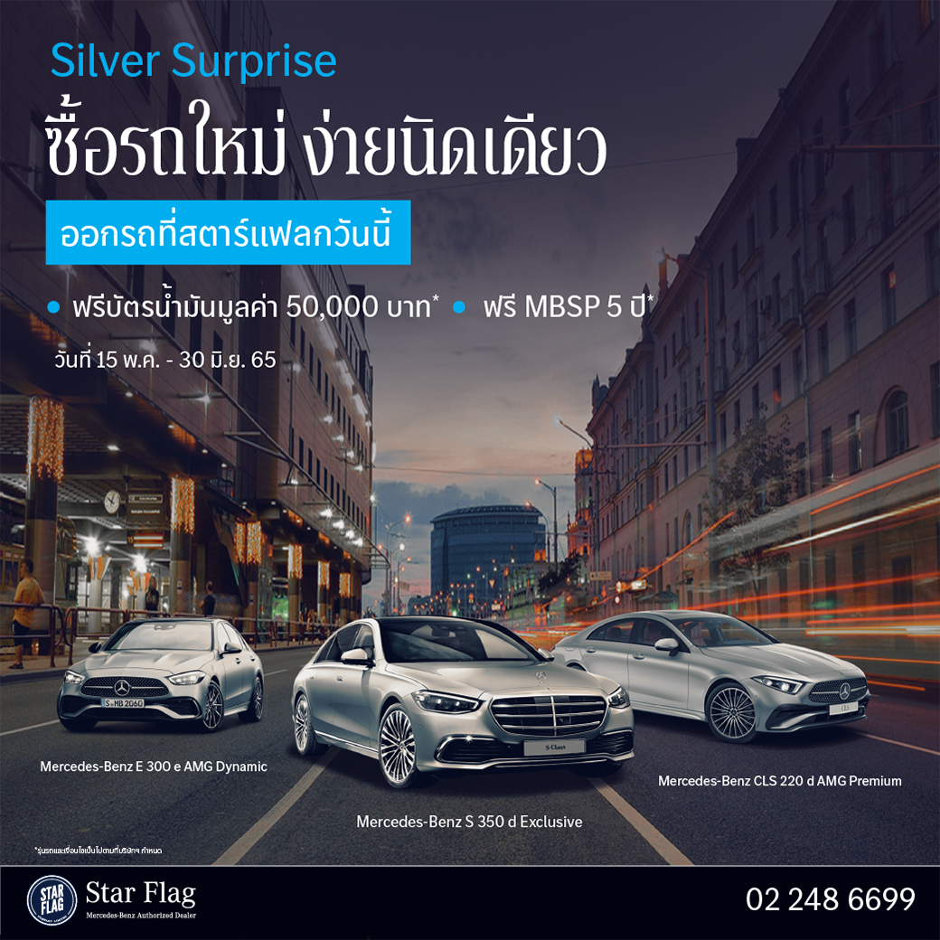 กรรมการผู้จัดการใหญ่ บริษัท สตาร์แฟลก จำกัด กล่าวว่า “ด้วยคุณภาพ และมาตรฐานของการบริการ และการเอาใจใส่เพื่อสร้างความพึงพอใจสูงสุดให้กับลูกค้านั้น นอกจากจะจัดข้อเสนอพิเศษ แบบ Best Deal Guarantee แล้ว เบนซ์ สตาร์แฟลก ยังจัดแคมเปญพิเศษบริการหลังการขายที่จะให้ความอุ่นใจให้กับลูกค้ามากขึ้นด้วย ซึ่งทำให้ยอดจำหน่ายในช่วง 5 เดือนที่ผ่านมาเป็นไปตามเป้าหมายที่ตั้งเอาไว้ พร้อมเชื่อมั่นว่าในปีนี้ เราจะยังคงสามารถครองบัลลังก์แชมป์ยอดขายต่อเนื่องเป็นปีที่ 9 ได้อย่างสบายๆ โดยเดือนมิถุนายนนี้ เพื่อเป็นการมอบความคุ้มค่า และตอกย้ำความเป็นผู้นำที่แตกต่างออกไป จึงมอบความพิเศษให้กับลูกค้ามากกว่าใคร แบบ Best Deal Guarantee โดยได้จัดโปรโมชั่นสุดพิเศษ ภายใต้คอนเซ็ปต์ Silver Surprise “ซื้อรถใหม่ง่ายนิดเดียว” ออกรถที่ เบนซ์ สตาร์แฟลก จนถึงวันที่ 30 มิถุนายน 2565 เอาใจลูกค้าที่ชื่นชอบรถสีบรอนซ์เงิน ให้ได้สัมผัสถึงความพิเศษ เมื่อจอง 3 รุ่นฮอต คือ Mercedes-Benz E300 e AMG Dynamic, Mercedes-Benz S 350 d Exclusive และ Mercedes-Benz CLS 220d AMG Premium พร้อมรับทันที บัตรเติมน้ำมันมูลค่า 50,000 บาท และเซอร์วิสแพ็คเกจ MBSP Extra Guarantee Package ที่ให้ความอุ่นใจตลอดการใช้งาน นานถึง 5 ปี อีกด้วย”