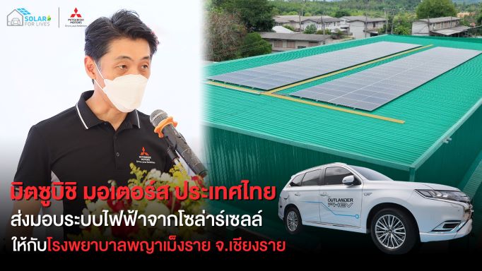 มิตซูบิชิ มอเตอร์ส ประเทศไทย ได้ทำการส่งมอบระบบไฟฟ้าจากโซล่าร์เซลล์ ซึ่งเป็นส่วนหนึ่งของโครงการ ‘Solar For Lives : พลังงานแสงอาทิตย์ เพื่อชีวิตที่ดีกว่า’ ให้กับโรงพยาบาลพญาเม็งราย จังหวัดเชียงราย ซึ่งนับเป็นโรงพยาบาลชุมชนแห่งที่ 2 ของโครงการฯ ที่ได้รับระบบไฟฟ้าจากโซล่าร์เซลล์ หลังจากทำการส่งมอบระบบไฟฟ้าจากโซล่าร์เซลล์ให้กับโรงพยาบาลน้ำพอง จังหวัดขอนแก่น ทางภาคตะวันออกเฉียงเหนือเป็นแห่งแรก เมื่อเดือนเมษายนที่ผ่านมา