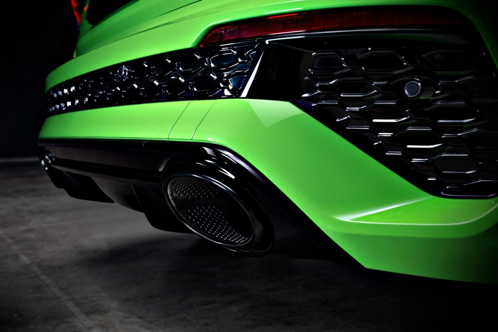 การออกแบบ The New Audi RS3 Sportback เน้นให้รถมีความสปอร์ตและดุดันมากยิ่งขึ้น กันชนหน้าแบบ RS และช่องดักอากาศขนาดใหญ่ขึ้น มาพร้อมกระจังหน้าลายรังผึ้ง อันเป็นเอกลักษณ์ของตระกูล RS พร้อมชุดแต่งภายนอกแบบ Glossy black และ Audi Ring และป้ายชื่อรุ่นสี Glossy black ทำให้รถสปอร์ตคอมแพ็คคันนี้ดูดุดันมากขึ้น อุปกรณ์มาตรฐาน ไฟหน้า Matrix LED และไฟท้าย LED แบบ Dynamic ซึ่งจุดเด่นของไฟหน้าจะมี digital daytime running light แบบพิกเซลล์ขนาด 3×5 ที่มาพร้อมกับเอฟเฟกต์ light staging แบบ RS3-signature ด้านฝั่งคนขับ เมื่อปลดล็อครถได้ ส่วน Daytime running light จะแสดงในรูปแบบของธงตราหมากรุก ช่องระบายอากาศบริเวณซุ้มล้อหน้าและซุ้มล้อหน้าที่กว้างขึ้นกว่ารุ่นเดิม 33 มิลลิเมตร และซุ้มล้อหลังกว้างขึ้น 10 มิลลิเมตร ทำให้รถดูดุดันมากยิ่งขึ้น ล้อขนาด 19 นิ้ว ลาย Y spoke ปั้มลาย RS และคาลิปเปอร์เบรกสีแดงปั้มลาย RS ทำให้รถดูสปอร์ตมากยิ่งขึ้น