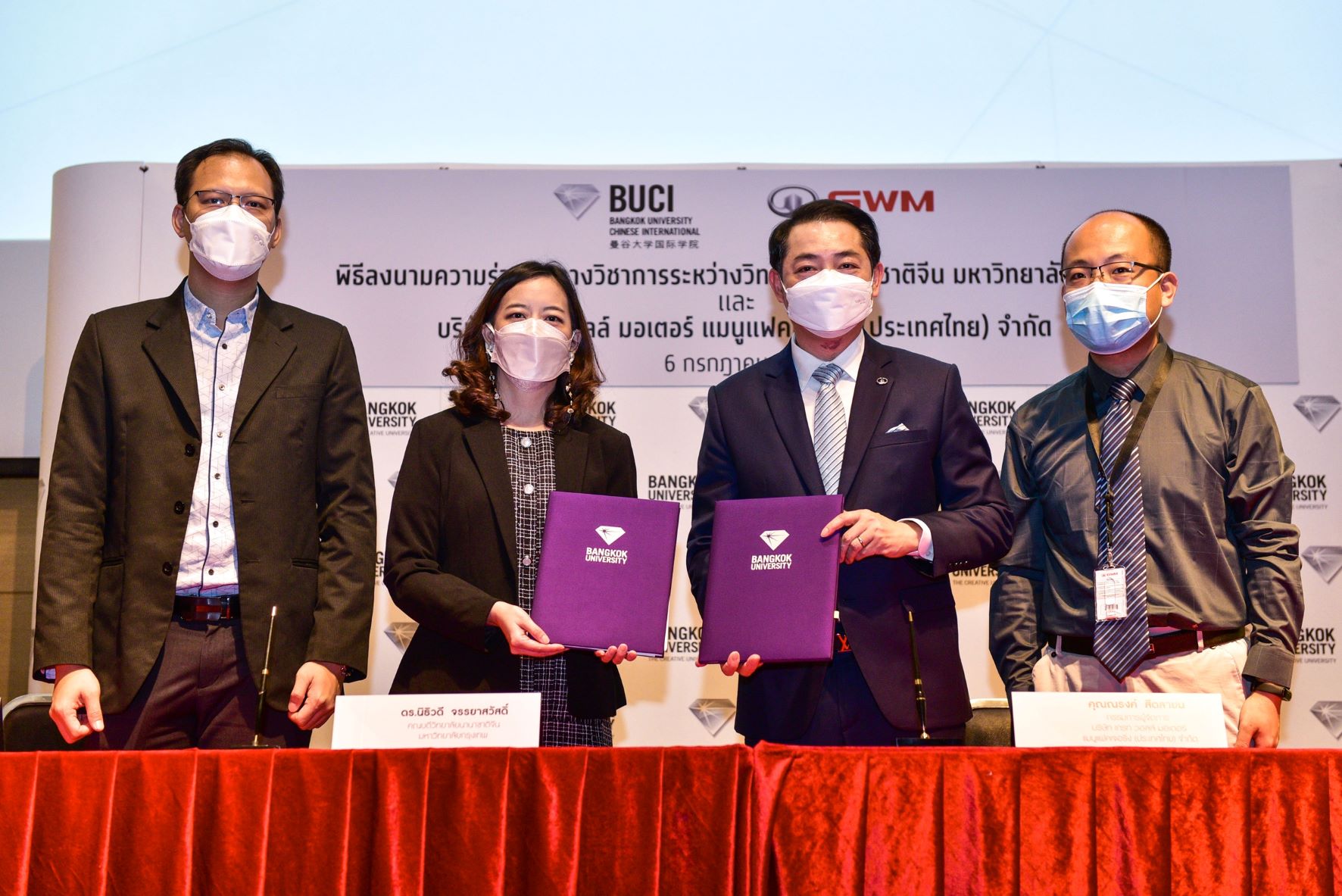 เกรท วอลล์ มอเตอร์ และวิทยาลัยนานาชาติจีน มหาวิทยาลัยกรุงเทพ ลงนามบันทึกข้อตกลงความร่วมมือ (MOU) เพื่อร่วมสร้างความเชี่ยวชาญให้กับบัณฑิต พร้อมส่งเสริมการผลิตผลงานวิชาการ ควบคู่ไปกับการสร้างโอกาสในการพัฒนาความรู้และประสบการณ์จริงทางธุรกิจเพื่อนำมาต่อยอดและใช้ประโยชน์ได้จริง ตอกย้ำความมุ่งมั่นของบริษัทที่จะก้าวสู่การเป็นผู้นำด้านยานยนต์ไฟฟ้า (xEV leader) ควบคู่ไปกับการให้ความร่วมมือกับภาคส่วนต่างๆ เพื่อพัฒนาอุตสาหกรรมยานยนต์ไทยให้เติบโตอย่างมั่นคงและยั่งยืนต่อไป
