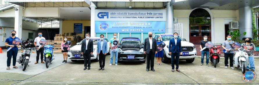 ในพิธีมอบรางวัล คณะผู้บริหาร นำโดย คุณจาตุรนต์ โกมลมิศร์ พร้อมด้วย คุณอโณทัยเอี่ยมลำเนา คุณพีระพงศ์ เอี่ยมลำเนา รองประธานจัดงานฯ และคุณนรบดี ผดุงเจริญ ประธานเจ้าหน้าที่ด้านการตลาด ร่วมกันให้การต้อนรับและมอบรางวัลแก่ผู้โชคดีฯ มูลค่ารวมกว่า 3 ล้านบาท ณ ลานอเนกประสงค์ อาคาร 2 บริษัท กรังด์ปรีซ์ อินเตอร์เนชั่นแนล จำกัด (มหาชน) เมื่อวันที่ 15 กรกฎาคม 2565