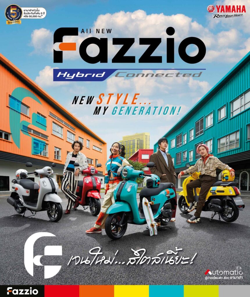 ในวันนี้ยามาฮ่า ยังคงตอกย้ำความเป็นผู้นำในไลฟ์สไตล์วัยรุ่นกลุ่ม Gen Z ด้วยรถจักรยานยนต์ออโตเมติกแฟชั่นดีไซน์เทรนดี้ สไตล์ใหม่ “ALL NEW YAMAHA FAZZIO HYBRID CONNECTED” NEW STYLE…MY GENERATION! เจนใหม่..สไตล์เนี๊ยะ! ด้วยแนวคิดในการพัฒนา Simple & Casual as a Lifestyle-Wear ที่มีดีไซน์ที่มีเอกลักษณ์ ทันสมัย เหมาะกับทุกไลฟ์สไตล์ สามารถใช้ในชีวิตประจำวันได้เป็นอย่างดี โดยมีฟังก์ชันที่เหมาะกับการใช้งานที่ตอบโจทย์การเดินทาง ทั้ง Application Y-Connect ตะขอแขวนของ 2 จุด เพิ่มความสะดวก พร้อมพื้นที่วางเท้าด้านหน้ากว้างเป็นพิเศษ ที่เก็บของและถังน้ำมันขนาดความจุที่ใหญ่ขึ้น แถบอะไหล่ตกแต่งด้านหน้าและหลัง ที่สามารถปรับเปลี่ยนได้ตามไลฟ์สไตล์