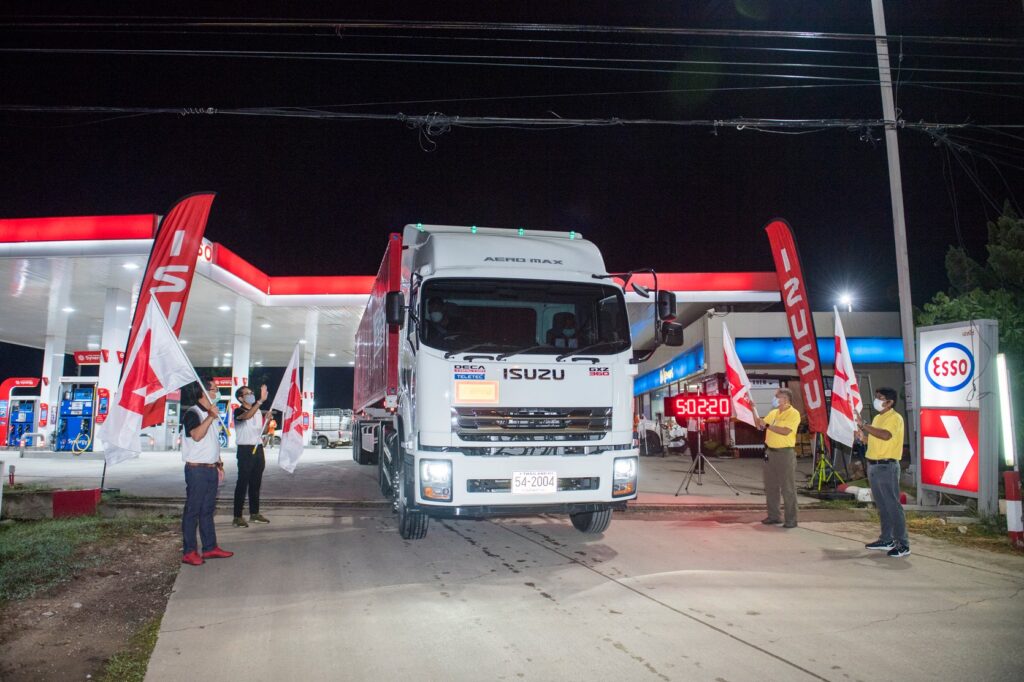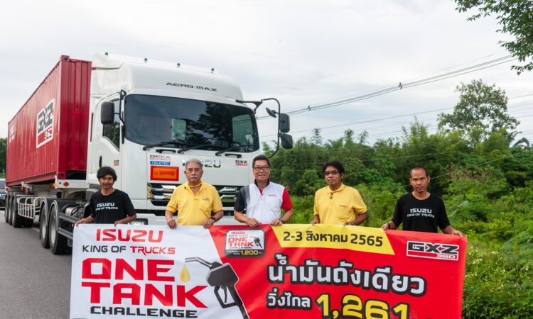 นายวิชัย สินอนันต์พัฒน์ กรรมการ บริษัท ตรีเพชรอีซูซุเซลส์ จำกัด เผยว่า “จากสถานการณ์ราคาน้ำมันที่ปรับตัวสูงขึ้นอย่างต่อเนื่อง ในปัจจุบัน อีซูซุจึงขอร่วมรณรงค์การใช้รถอย่างประหยัดน้ำมัน ด้วยการจัดกิจกรรมขับประหยัดน้ำมันครั้งแรกในวงการรถบรรทุกเมืองไทย “Isuzu King of Trucks One Tank Challenge น้ำมันถังเดียววิ่งไกล 1,200 กิโลเมตร” โดยใช้น้ำมันเพียงถังเดียวของรถบรรทุกสิบล้อหัวลากอีซูซุ GXZ 360 แรงม้า รุ่นใหม่! รถมาตรฐานจากโรงงาน พร้อมหางพ่วง 3 เพลา บรรทุกตู้คอนเทนเนอร์ 40 ฟุต น้ำหนักรถรวมน้ำหนักลากจูงกว่า 50 ตัน ระหว่างวันที่ 2-3 สิงหาคม 2565 โดยอีซูซุได้เชิญพนักงานขับรถบรรทุกตัวจริง 2 ทีม (ทีมละ 2 ท่าน) มาทำหน้าที่ผู้ขับตลอดเส้นทาง จากจังหวัดเชียงใหม่มุ่งหน้าสู่ภาคใต้ ในสภาพการจราจรจริง ใช้วิธีการขับขี่ในแบบการใช้งานจริงตามปกติ เปิดแอร์ตลอดเส้นทาง โดยมีตัวแทนสื่อมวลชนร่วมเป็นสักขีพยานไปตลอดเส้นทาง สามารถสร้างสถิติใหม่ให้กับวงการรถบรรทุกเมืองไทย น้ำมันหนึ่งถัง 370 ลิตร ขับไปได้ระยะทางไกลถึง 1,261 กิโลเมตร คิดเป็นอัตราการใช้น้ำมันเชื้อเพลิงโดยเฉลี่ยตลอดเส้นทาง 3.56 กม. / ลิตร อีซูซุรู้สึกประทับใจและยินดีอย่างยิ่ง เพราะกิจกรรมนี้ไม่เพียงรณรงค์ให้คนไทยใช้น้ำมันอย่างรู้คุณค่าด้วยเทคนิคการขับแบบประหยัด แต่ยังช่วยสะท้อนให้เห็นถึงการประหยัดน้ำมันอันยอดเยี่ยมของรถบรรทุกสิบล้อหัวลากอีซูซุ GXZ 360 แรงม้า รุ่นใหม่! พร้อมตอกย้ำความเป็นเจ้าแห่งรถบรรทุกมาอย่างยาวนานของอีซูซุด้วย จึงถือเป็นกิจกรรมครั้งสำคัญของเรา”