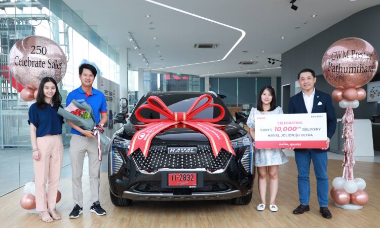 เกรท วอลล์ มอเตอร์ ประกาศความสำเร็จของการเข้ามาดำเนินธุรกิจอย่างเป็นทางการในประเทศไทยในปีที่สอง ส่งมอบรถยนต์พลังงงานไฟฟ้าอัจฉริยะที่เป็นมิตรกับสิ่งแวดล้อมออกสู่ท้องถนนประเทศไทยครบ 10,000 คัน โดยรถยนต์คันที่ 10,000 เป็นการส่งมอบรถยนต์ All New HAVAL JOLION Hybrid SUV รุ่น ULTRA ให้กับลูกค้าที่ GWM เพรสทีจ ปทุมธานี นอกจากนี้ ในเดือนกรกฏาคมที่ผ่านมา รถยนต์ทั้ง 3 รุ่น ได้แก่ All New HAVAL H6 Hybrid SUV ORA Good Cat และ All New HAVAL JOLION Hybrid SUV กวาดยอดขายรวมทั้งสิ้น 1,150 คัน ตอกย้ำความเชื่อมั่นอย่างท่วมท้นจากผู้บริโภค พร้อมทั้งสานต่อภารกิจในการก้าวขึ้นเป็นผู้นำด้านยานยนต์ไฟฟ้าของไทย (xEV Leader) ที่มุ่งนำเสนอยานยนต์ไฟฟ้าที่อัดแน่นด้วยนวัตกรรมล้ำสมัย พร้อมสนับสนุนการสร้างความแข็งแกร่งให้กับระบบนิเวศยานยนต์ไฟฟ้าของประเทศไทยอย่างเป็นรูปธรรม