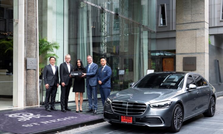 มร.แซม เฉีย รองผู้จัดการใหญ่ โรงแรม เดอะ เซนต์ รีจิส กรุงเทพฯ นางปัญจวิไล สงค์อิ่ม กรรมการผู้จัดการ บริษัท โอเรียนเต็ลทรานซ์ แอนด์ คาร์ เซอร์วิซ จำกัด ผู้ให้บริการรถลิมูซีนสำหรับโรงแรมชั้นนำของเมืองไทย และนายกรกฎ วารวิจิตร ผู้จัดการทั่วไปฝ่ายขายรถยนต์ บริษัท เมอร์เซเดส-เบนซ์ (ประเทศไทย) จำกัด ร่วมเป็นสักขีพยานในการรับมอบรถยนต์เมอร์เซเดส-เบนซ์ เอส คลาสรุ่นใหม่ ซึ่งโรงแรม เดอะ เซนต์ รีจิส กรุงเทพฯ เลือกใช้เป็นรถยนต์นั่งสำหรับแขกผู้เข้าพักในโรงแรม เพื่อยกระดับการบริการที่พร้อมมอบทั้งความหรูหราและความสะดวกสบายยิ่งขึ้นให้กับทุกคน