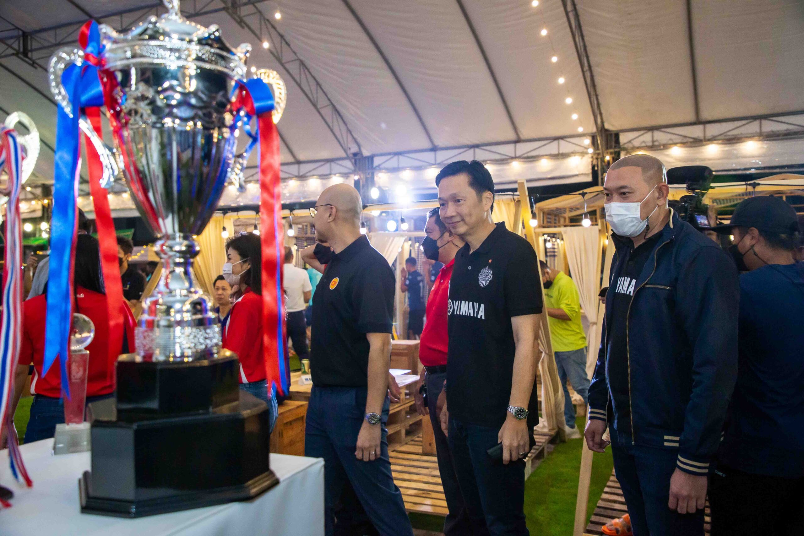 นายพงศธร เอื้อมงคลชัย รองประธานกรรมการบริหาร บริษัท ไทยยามาฮ่ามอเตอร์ จำกัด ถ่ายภาพเป็นที่ระลึกในการรับมอบเสื้อขอบคุณผู้สนับสนุน กับนายเนวิน ชิดชอบ ประธานสโมสรบุรีรัมย์ ยูไนเต็ด และศิวรักษ์ เทศสูงเนิน ผู้รักษาประตูมือ 1 ทีมชาติไทยจากสโมสรบุรีรัมย์ ในการแถลงข่าวเปิดตัวทีมบุรีรัมย์ ในการผนึกกำลังเพื่อการแข่งขันฟุตบอลไทยลีกฤดูกาล 2022/23 และการแข่งขันกีฬาอีสปอร์ตอย่างยิ่งใหญ่ ที่แคมป์สนามฝึกซ้อมสโมสรบุรีรัมย์ ยูไนเต็ด เขากระโดง โดยในปีนี้สโมสรบุรีรัมย์ ยูไนเต็ดตั้งเป้ารักษาแชมป์ทั้ง 3 รายการ ในการแข่งขันฟุตบอลพร้อมดันแข้งนักเตะเยาวชนเก็บประสบการณ์ยังต่างแดน และในส่วนของกีฬาอีสปอร์ตพร้อมเดินหน้าเป็นเจ้าแห่งกีฬาอีสปอร์ตในระดับโลกอย่างเช่นเคย