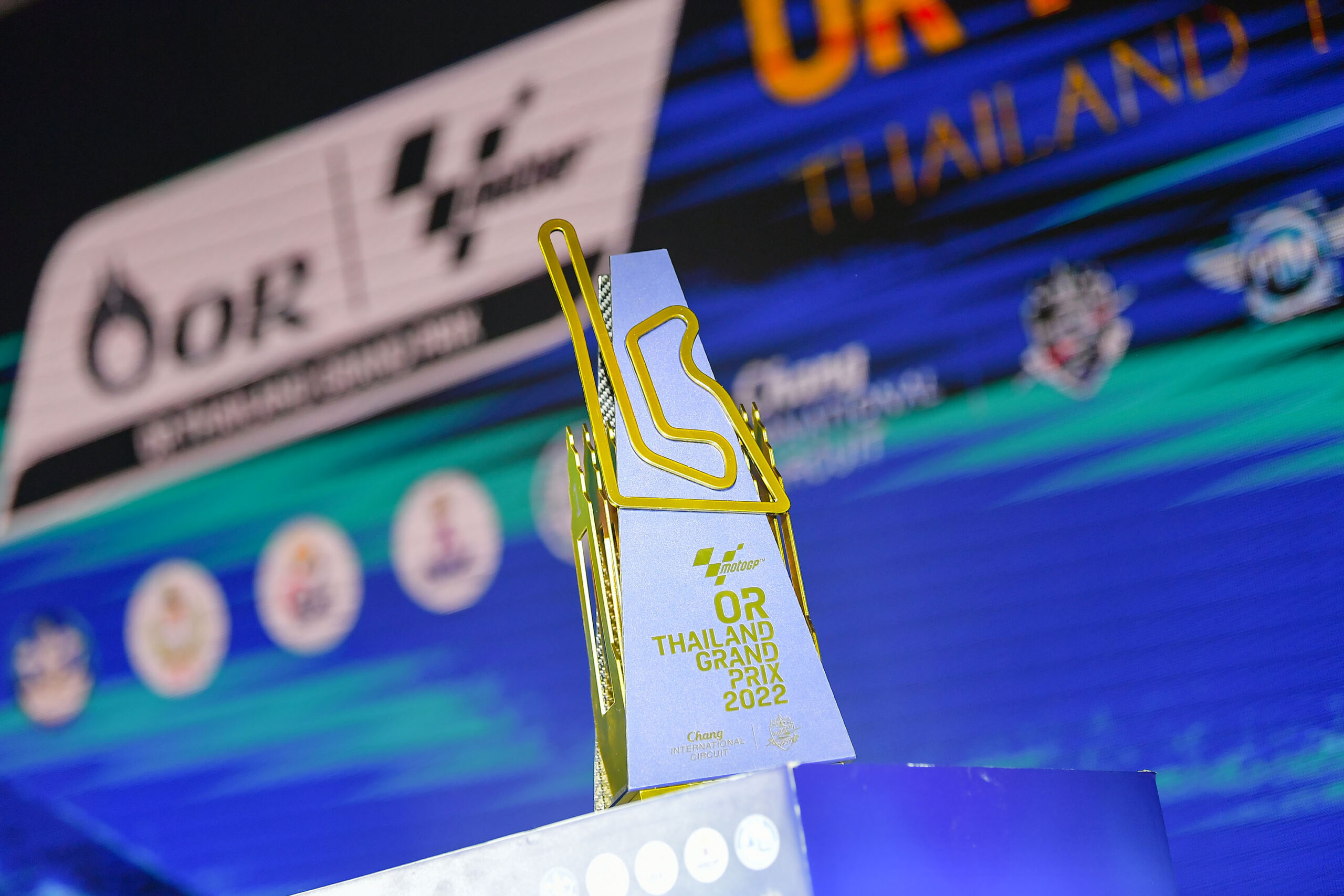 “สำหรับถ้วยรางวัลปีนี้ออกแบบสื่อถึงปรากฏการณ์ธรรมชาติที่แสงอาทิตย์ลอดช่อง 15 ประตู ของปราสาทหินพนมรุ้งที่มีชื่อเสียงโด่งดังของ จ.บุรีรัมย์ และด้านบนของฐานคือลวดลาย บนแทร็กของ สนามช้างฯ ผสมผสานตัวละครหนุมานที่ใช้ในสื่อประชาสัมพันธ์ของ ThaiGP โดยหนุมานเป็นสัญลักษณ์ที่สื่อถึงความรวดเร็ว ว่องไว เปรียบเสมือนการแข่งขันโมโตจีพีที่เป็นกีฬาแห่งความเร็วเช่นกัน”