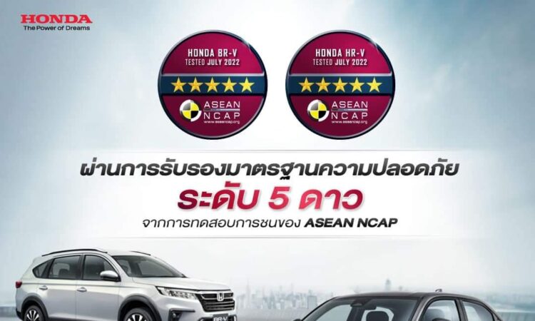 ฮอนด้า ออโตโมบิลประกาศความสำเร็จของยนตรกรรมในไลน์อัปเอสยูวี ฮอนด้า เอชอาร์-วี อี:เอชอีวี ใหม่ และ ฮอนด้า บีอาร์-วี ใหม่ เจเนอเรชันที่ 2 ที่ผ่านการรับรองมาตรฐานความปลอดภัยระดับ 5 ดาว จากการทดสอบการชนของ ASEAN NCAP ครั้งล่าสุด