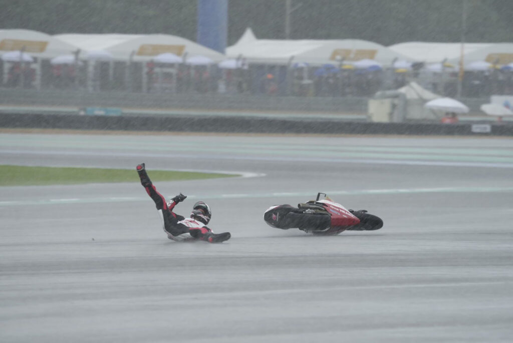 จุดเปลี่ยนของเรซนี้เกิดขึ้นจากฝนที่เทกระหน่ำลงมาอย่างหนักก่อนเริ่มแข่งขันไม่กี่นาที ส่งผลให้กรรมการประกาศเป็น “เว็ตเรซ” และลดระยะทางลงเหลือ 16 รอบสนาม โดย สมเกียรติ ที่ได้ออกสตาร์ทจากโพลขยับขึ้นนำอย่างรวดเร็ว ขณะที่ เขมินท์ ก็ไต่จากกริดที่ 16 ขึ้นมาเกาะท็อปเท็นได้ตั้งแต่รอบแรกเช่นกัน