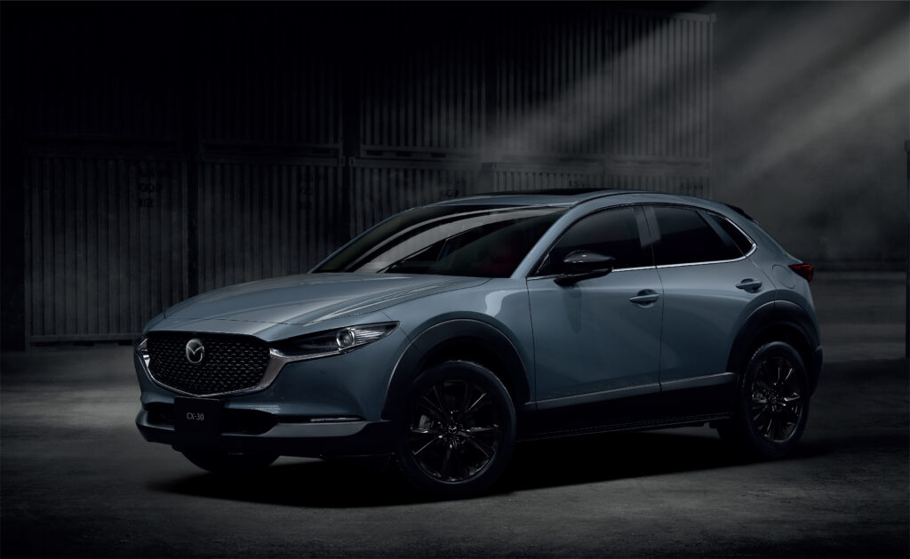 มาสด้า CX-30 Carbon Edition มาพร้อมความโดดเด่นด้วยสีโทนเข้ม ตัดกับกระจกมองข้างสีดำที่มีเอกลักษณ์พิเศษ ล้ออัลลอยสีดำ ขนาด 18 นิ้ว ภายในห้องโดยสารประณีตพิถีพิถันทุกรายละเอียด สะท้อนความพรีเมี่ยมด้วยเบาะหนังสีแดง Burgundy ตกแต่งภายในด้วยหนังสีดำและด้ายสีแดง มอบความเพลิดเพลินไปตลอดการเดินทางกับระบบเสียง Bose รอบทิศทาง พร้อมลำโพง 12 ตำแหน่ง ตอบโจทย์ทุกมิติของการใช้ชีวิต และมอบประสบการณ์ที่แตกต่างให้มีความหมายมากขึ้นกว่าเดิม ราคาจำหน่าย 1,211,000 บาท