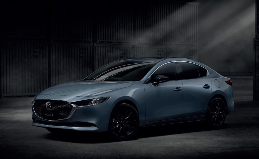 มาสด้า3 Carbon Edition รุ่นซีดาน 4 ประตู มาพร้อมกับสีภายนอกใหม่ สีเทา โพลี เมทัล เกรย์ เป็นครั้งแรก โดยการตกแต่งตัดกับสีโทนเข้ม กระจกมองข้างสีดำ ล้ออัลลอยสีดำ ขนาด 18 นิ้ว ตอบโจทย์ทุกความสปอร์ต สง่างาม เรียบหรูทุกมุมมอง ภายในตกแต่งเป็นพิเศษด้วยหนังสีดำและด้ายสีแดง พร้อมเบาะหนังสีแดง Burgundy และมอบความมั่นใจให้ทุกการเดินทางด้วยระบบแสดงภาพ 360 องศารอบทิศทาง ราคาจำหน่าย 1,210,000 บาท