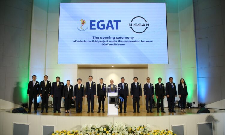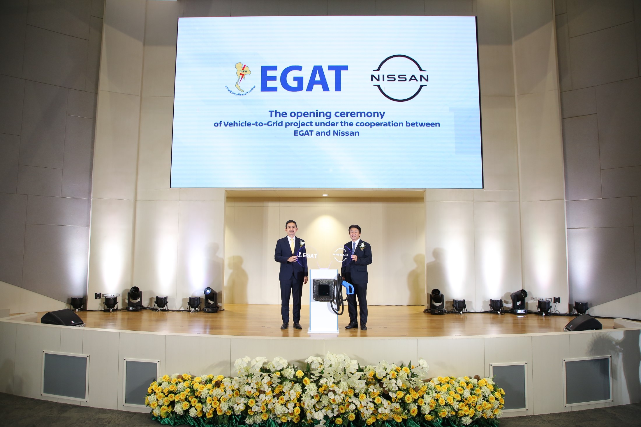 โดยในพิธี ได้รับเกียรติจาก ฯพณฯคาซูยะ นาชิดะ เอกอัครราชทูตญี่ปุ่นประจำประเทศไทย กล่าวแสดงความยินดี และ ดร. ศิริ จิระพงษ์พันธ์ ที่ปรึกษารัฐมนตรีว่าการกระทรวงพลังงาน ร่วมเป็นประธานในพิธีเปิดโครงการความร่วมมือระหว่าง บริษัท นิสสัน มอเตอร์ (ประเทศไทย) จำกัด กับ กฟผ. นำร่องศึกษาการแปลงพลังงานระหว่างยานยนต์ไฟฟ้ากับระบบไฟฟ้า (Vehicle-to-Grid หรือ V2G) และการควบคุมกำลังไฟฟ้าจากศูนย์ควบคุมกำลังไฟฟ้าแห่งชาติ พร้อมด้วยผู้บริหารทั้งสองหน่วยงาน ณ ห้องออดิทอเรียม อาคาร 50 ปี กฟผ. สำนักงานใหญ่ จ.นนทบุรี