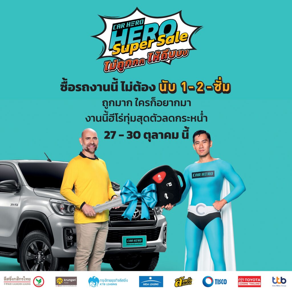 เพื่อตอกย้ำความเป็นที่หนึ่งเรื่องรถมือสอง และเป็นการฉลองความสำเร็จคว้า 4 รางวัลโฆษณาระดับโลก คาร์ ฮีโร่ จึงมีการจัดงานใหญ่ “CAR HERO “HERO SUPER SALE”” ซึ่งในงานนี้จัดเพื่อสานฝันคนอยากมีรถยนต์ ทั้งที่สาขากาญจนาภิเษก กรุงเทพฯ และสาขาโคราช จังหวัดนครราชสีมา ระหว่างวันที่ 27-30 ตุลาคม 2565 โดยจัดโปรโมชั่นให้เป็นพิเศษเป็นครั้งแรกของโลกในวงการรถมือสอง ที่ลูกค้าสามารถออกรถได้ทันทีกับดอกเบี้ย 0% นาน 48 เดือน เรียกว่า 4 วันนี้ห้ามพลาดจริงๆ