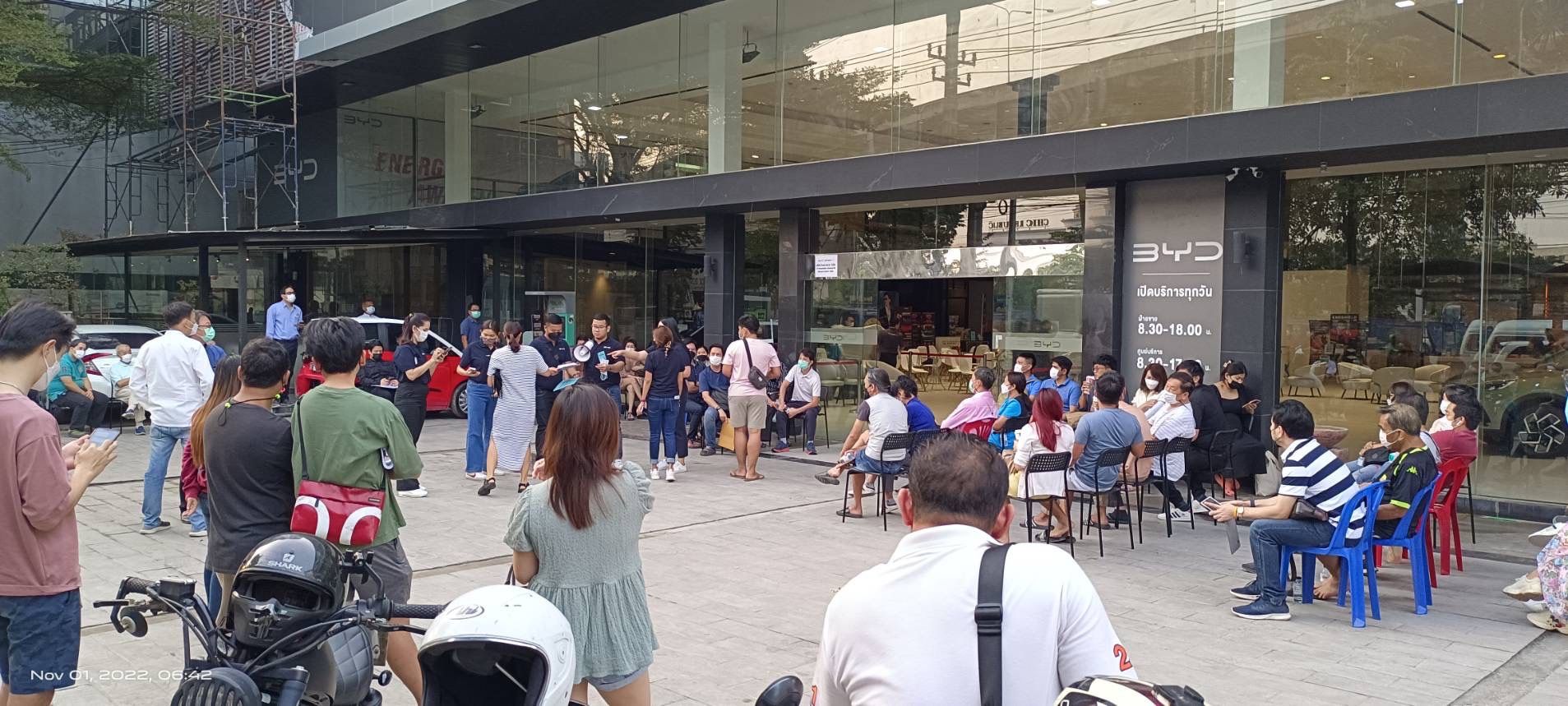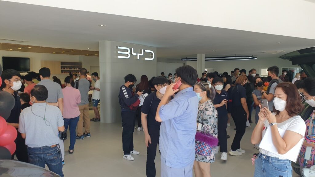 นับตั้งแต่เปิดตัวและประกาศราคา “BYD ATTO 3” อย่างเป็นทางการเมื่อต้นเดือนตุลาคมที่ผ่านมา ซึ่งเกิดปรากฏการณ์วงการอุตสาหกรรมยานยนต์เมืองไทย ด้วยราคา1,199,900 บาท และเมื่อวันที่ 1 พฤศจิกายน 2565 ซึ่งเป็นวันเปิดจองอย่างเป็นทางการ ที่ต้องบันทึกไว้ในหน้าประวัติศาสตร์ สร้างปรากฏการณ์ใหม่ปลุกกระแสยานยนต์ไฟฟ้าในอุตสาหกรรมยานยนต์ไทย กระแสตอบรับการเปิดจอง ตอกย้ำความสำเร็จแบบเกินความคาดหมาย “จองคิว” ครั้งใหญ่ ทางบริษัทฯ ขอขอบคุณกระแสตอบรับจากประชาชนชาวไทยเป็นอย่างสูง ที่ให้ความสนใจอย่างล้นหลามที่ได้เดินทางมายังโชว์รูมใกล้บ้านทั้ง 32 แห่งทั่วประเทศ เพื่อปักหลักรอกันแบบข้ามวันข้ามคืน