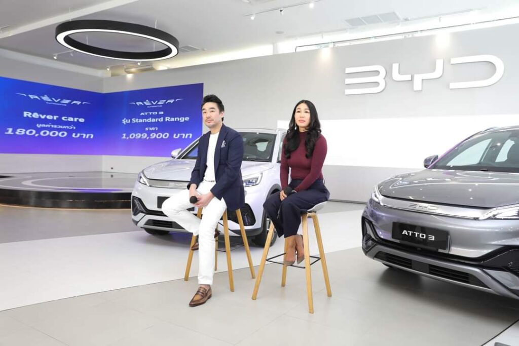 และคุณประธานพร พรประภา รองประธานเจ้าหน้าที่บริหาร บริษัท Rêver Automotive จำกัด กล่าวเสริมต่อว่า“เรายังคงมุ่งเน้นสร้างความเชื่อมั่นให้แก่ผู้ลูกค้า BYD ATTO 3 ไม่ว่าจะเป็นลูกค้ารุ่น Standard Range และรุ่น Extend Range ซึ่งยังคงโปรแกรม Rêver Care ที่จะดูแลรถทุกคันด้วยสิทธิพิเศษแบบเต็มที่ คุ้มค่าด้วย ดอกเบี้ยพิเศษในอัตรา 1.68% นาน 48 เดือน พร้อมฟรี ค่าบริการบำรุงรักษา ค่าแรง ค่าอะไหล่ นาน 8 ปี อุ่นใจด้วยบริการช่วยเหลือฉุกเฉิน 24 ชั่วโมง นาน 8 ปี และ Home Charger พร้อมติดตั้ง มั่นใจไปกับการรับประกันคุณภาพตัวรถและแบตเตอรี่นาน 8 ปี หรือ 160,000 กิโลเมตร สามารถพบกับโชว์รูมและศูนย์บริการ ที่พร้อมดูแลคุณ 32 แห่งทั่วประเทศ และในวันที่ 12 เดือน 12 ทางบริษัทฯ จะเปิดตัวอย่างเป็นทางการกับ Appication BYD เพื่อให้ความสะดวกกับลูกค้า เต็มรูปแบบอย่างเป็นทางการ”
