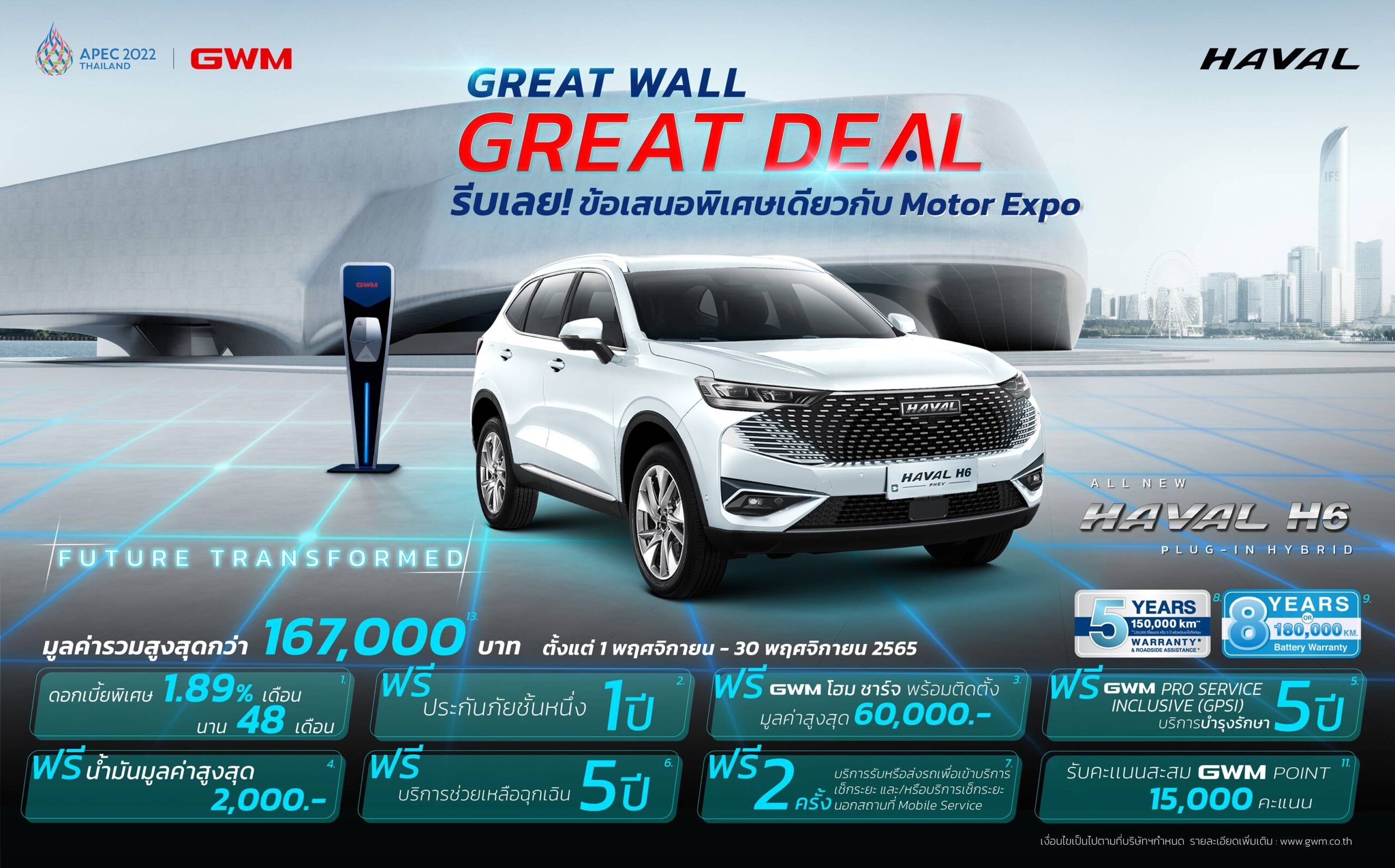 • พบข้อเสนอและสิทธิประโยชน์สุดเอ็กซ์คลูซีฟจาก เกรท วอลล์ มอเตอร์ อีกมากมาย ภายใต้แคมเปญ Great Wall Great Deal สำหรับรถยนต์แบรนด์ HAVAL ทั้ง 3 รุ่น