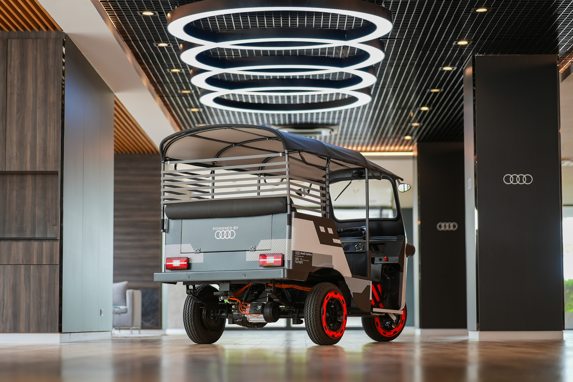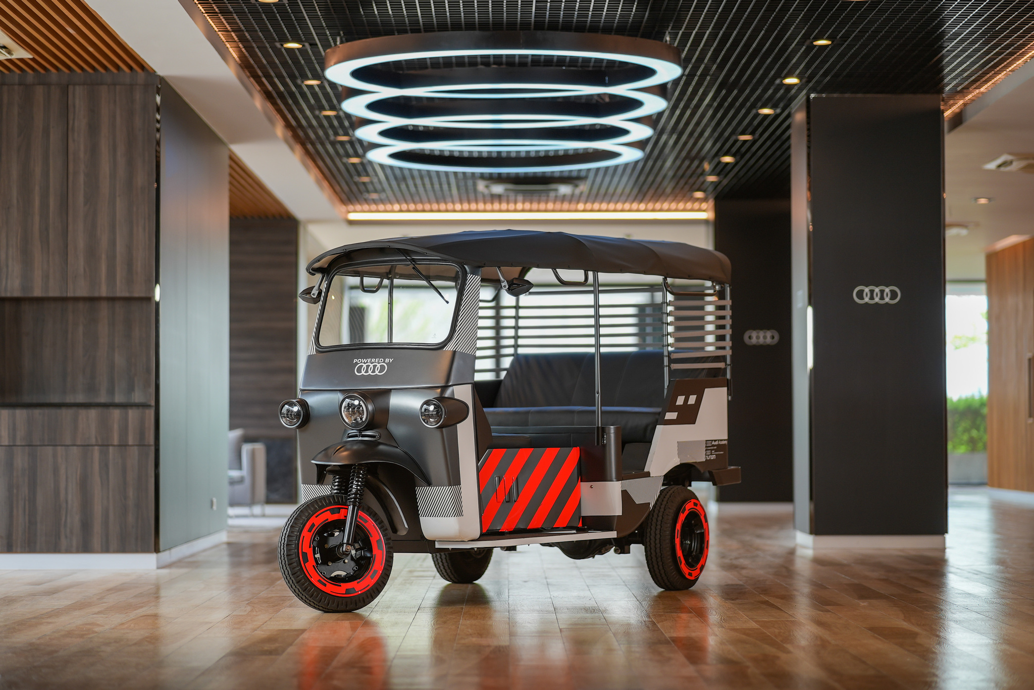 • ครั้งแรกในเอเชียกับ TukTuk ต้นแบบ “e-Rickshaw” โดยเป็นการดัดแปลงการใช้พลังงานจากแบตเตอรี่ของรถไฟฟ้า 100% อย่าง Audi e-tron ที่ผ่านการใช้งานมาแล้ว นำกลับมาใช้ประโยชน์ใหม่ ภายใต้แนวคิด “Second – life Batteries” ซึ่งตัวรถจะเป็นรถตุ๊กตุ๊กที่มาจากประเทศไทย มีอายุถึง 30 ปี ผ่านการปรับโฉมให้ดูทันสมัยขึ้น ที่โรงงานในเมือง Neckarsulm ประเทศเยอรมนี โดยแบตเตอรี่ไฟฟ้าของ Audi e-tron นั้น เป็นแบบ high-energy density ซึ่งมีประสิทธิภาพสูง ถึงแม้ว่าแบตเตอรี่ดังกล่าวจะเคยถูกใช้มาแล้วในรถทดสอบ Audi e-tron ก็ตาม แต่ยังมีกำลังไฟที่เพียงพอ สำหรับการนำไปปรับใช้ในรถตุ๊กตุ๊กที่มีมอเตอร์ไฟฟ้าที่กำลังน้อยกว่าได้เป็นอย่างดี ถือเป็นการพิสูจน์ในคุณภาพของแบตเตอรี่ใช้แล้วของ Audi e-tron ว่ายังสามารถนำไปใช้ต่อได้ สะท้อนวิสัยทัศน์ “The mobility of the future” การขับเคลื่อนแห่งอนาคตของอาวดี้ ที่มุ่งมั่นจะเป็นแรงผลักดันสำคัญในการสร้างโลกแห่งอนาคตที่น่าอยู่อย่างยั่งยืน ด้วยการนำเทคโนโลยีที่ก้าวหน้า มีความคิดสร้างสรรค์ และความกระตือรือร้นที่จะสร้างสังคมที่น่าอยู่ ตัวรถสามารถผลิตกำลังได้สูงสุด 8.6 แรงม้า แรงบิดสูงสุด 34.6 นิวตันเมตร ส่งกำลังผ่านเกียร์ธรรมดา 2 จังหวะ สามารถทำความเร็วสูงสุดได้ 48 กิโลเมตรต่อชั่วโมง