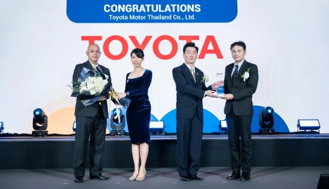 นายนันทวัฒน์ ศรีวรัตน์อัชกุล รักษาการผู้ช่วยกรรมการผู้จัดการใหญ่ สายงานการบริหารองค์กร และ นายพัฒนพงศ์ สิโรดม รองผู้อำนวยการฝ่ายทรัพยากรบุคคล บริษัท โตโยต้า มอเตอร์ ประเทศไทย จำกัด รับมอบรางวัล Hall of fame “Best Employers award” จาก ดร.อดิศักดิ์ จันทรประภาเลิศ กรรมการผู้จัดการและพาร์ทเนอร์ พร้อมด้วย นส.นภัส ศิริวรางกูล พาร์ทเนอร์ KINCENTRIC Best Employers Thailand 2022 เมื่อวันที่ 23 พฤศจิกายน ที่ผ่านมา ณ โรงแรมสยามเคมปินสกี้ กรุงเทพฯ