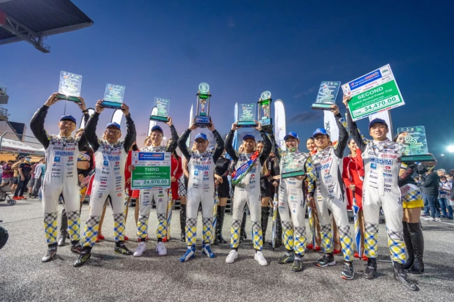 อันดับ 1 รถต้นแบบ รุ่น GR86 ที่ใช้เชื้อเพลิงซึ่งเป็นกลางทางคาร์บอน หมายเลข S22 จากทีม Toyota Gazoo Racing Team Thailand (443 รอบ)