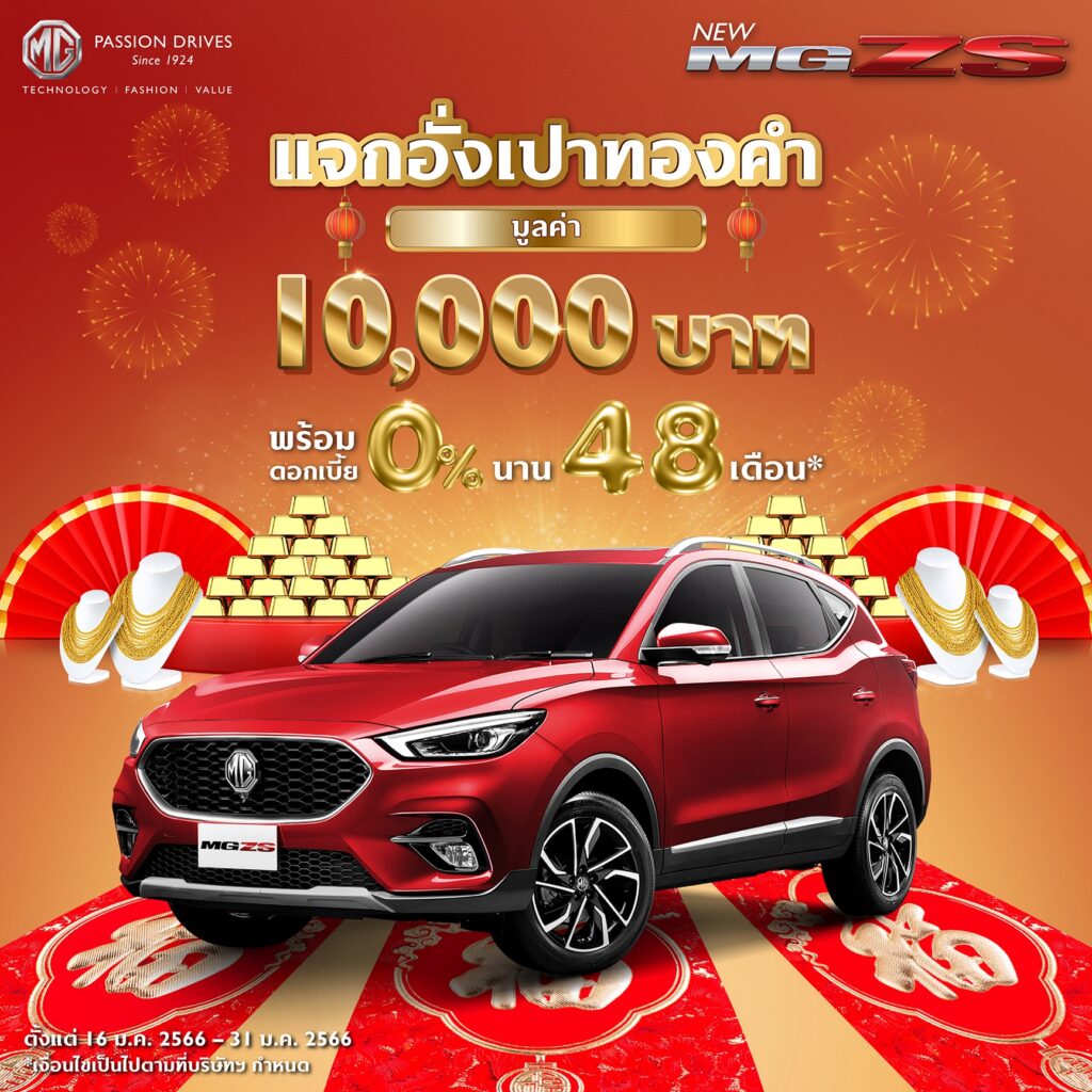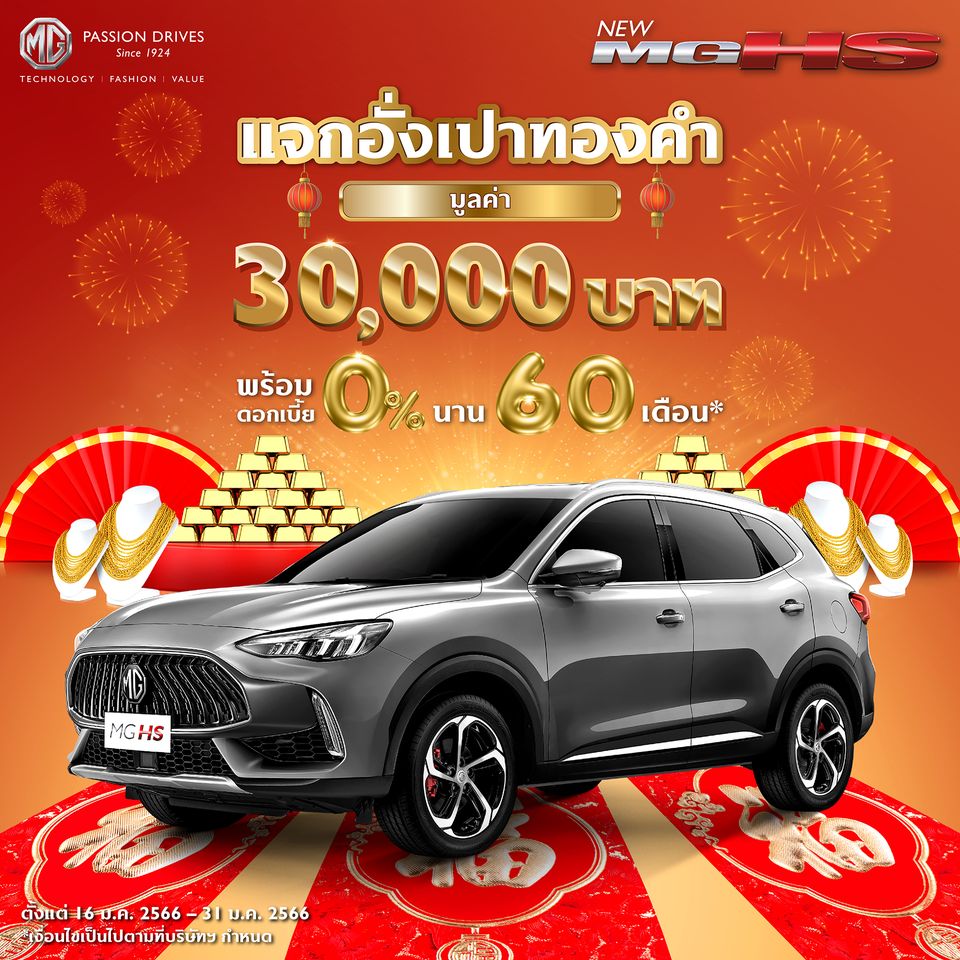 บริษัท เอสเอไอซี มอเตอร์ – ซีพี จำกัด และ บริษัท เอ็มจี เซลส์ (ประเทศไทย) จำกัด ผู้ผลิตและผู้จำหน่ายรถยนต์เอ็มจีในประเทศไทย ต้อนรับปีกระต่ายทองด้วยแคมเปญยิ่งใหญ่ มอบ ความคุ้มค่าให้ลูกค้าใหม่ ด้วยแคมเปญออกรถรับทองคำ!! มูลค่าสูงสุด 30,000 บาท พร้อมรับดอกเบี้ยต่ำสุด 0% นาน 60 เดือน ตั้งแต่วันนี้ ถึง 31 มกราคม 2566 โดยมีรายละเอียดแคมเปญของแต่ละรุ่น ดังนี้