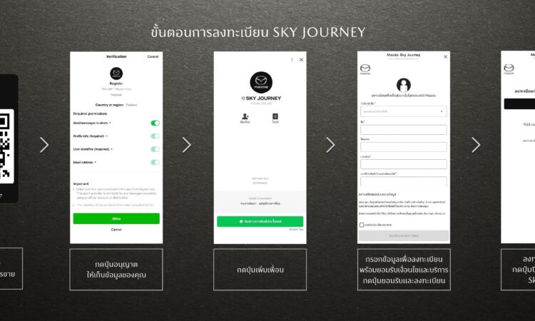 มาสด้าจึงได้พัฒนาและเปิดตัวระบบ Sky Journey ขึ้นมา เพื่อเป็นช่องทางหลักในการจองซื้อรถยนต์ เพียงลูกค้าลงทะเบียนเพื่อรับข้อมูลการเสนอการขายจากที่ปรึกษาการขายอย่างเป็นทางการของมาสด้า ผ่านการสแกน QR Code ประจำตัวของที่ปรึกษาการขาย ตามโชว์รูม ตามงานอีเวนต์ เพื่อเข้าสู่ระบบ Sky Journey โดยเมื่อสแกนและกรอกข้อมูลเพื่อลงทะเบียนแล้ว ลูกค้าจะรับข้อมูลพร้อมข้อเสนอพิเศษจากที่ปรึกษาการขาย รายละเอียดเกี่ยวกับผลิตภัณฑ์ ข้อมูลด้านไฟแนนท์ อัตราการผ่อนชำระ รวมถึงรายละเอียดสำคัญๆ เกี่ยวกับการซื้อรถ ซึ่งการจองผ่านช่องทาง Sky Journey จะช่วยให้ลูกค้าสามารถยืนยันความถูกต้องของข้อมูลที่ใช้ในการจองรถ การออกใบเสนอราคา การออกใบจอง รวมถึงสามารถเรียกดูรายละเอียดข้อมูลส่วนตัวและข้อมูลรถยนต์เพื่อใช้แจ้งไปยังประกันภัยได้ ซึ่งช่วยเพิ่มความสะดวกสบายและมอบความปลอดภัยของข้อมูลให้กับลูกค้าได้มากยิ่งขึ้น