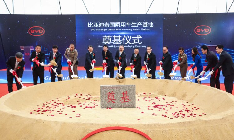 เมื่อวันที่ 10 มีนาคมที่ผ่านมา BYD บริษัทผู้ผลิตรถยนต์ไฟฟ้าชั้นนำของจีน จัดพิธีวางศิลาฤกษ์โรงงานผลิตรถยนต์สาขาต่างแดนแห่งแรกในประเทศไทย พร้อมจัดพิธีส่งมอบรถ BYD ATTO 3 คันที่ 9,999 และ 10,000 ในคราวเดียวกัน โดยพิธีดังกล่าวสะท้อนชัดถึงการเติบโตทางธุรกิจของ BYD ในต่างแดนรวมถึงความแข็งแกร่งทางธุรกิจที่หยั่งรากลึกยิ่งขึ้นของแบรนด์ในตลาดเอเชีย-แปซิฟิก โดยมีบุคคลสำคัญจากหลากหลายวงการในประเทศไทยเข้าร่วม อาทิ คุณนฤตม์ เทอดสถีรศักดิ์ เลขาธิการคณะกรรมการส่งเสริมการลงทุน (BOI), คุณพิริยะ เข็มพล ที่ปรึกษาพิเศษด้านการต่างประเทศ คณะกรรมการนโยบายเขตพัฒนาพิเศษภาคตะวันออก (EEC), คณสุพจน์ ต่ออาจหาญ รองผู้ว่าราชการจังหวัดระยอง, คุณณรงค์ศักดิ์ พุทธพรมงคล ประธานหอการค้าไทย-จีน, คุณจรีพร จารุกรสกุล ประธานคณะกรรมการบริษัทและประธานเจ้าหน้าที่บริหารกลุ่ม บริษัท ดับบลิวเอชเอ คอร์ปอเรชั่น จำกัด (มหาชน), คุณทรงศักดิ์ ชื่นตา ผู้อำนวยการ กนอ. สำนักงานนิคมอุตสาหกรรม อีสเทิร์นซีบอร์ด 1-4 และ คุณประธานวงศ์ พรประภา ประธานเจ้าหน้าที่บริหาร บริษัท เรเว่ ออโตโมทีฟ จำกัด ตัวแทนจำหน่ายรถยนต์ BYD ในประเทศไทย เป็นต้น