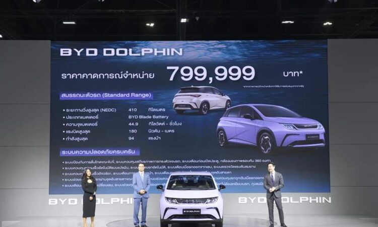 • BYD DOLPHIN Standard Range ราคาคาดการณ์จำหน่าย 799,999 บาท