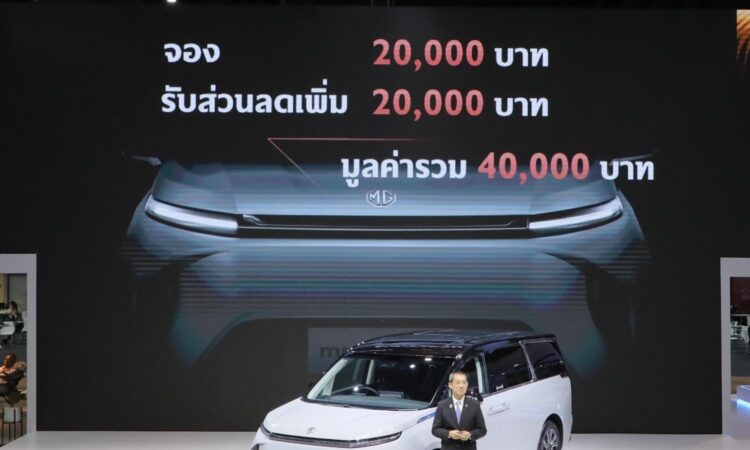 สำหรับงานมอเตอร์โชว์ในครั้งนี้ เอ็มจีได้นำ NEW MG MAXUS 9 รถลักชัวรี่ MPV ไฟฟ้า100% แบบ 7 ที่นั่ง เป็นพวงมาลัยขวาคันแรกของประเทศไทยและอาเซียน ที่พร้อมส่งมอบประสบการณ์อีวีสุดหรูหรา เพียบพร้อมด้วยฟังก์ชั่นและฟีเจอร์ล้ำสมัย ผสานลงตัวกับงานดีไซน์รูปโฉมใหม่ โดดเด่นด้วยหลังคา Dual Panoramic Sunroof ยาวถึงด้านหลังทำให้ห้องโดยสารดูโปร่ง โล่ง สัมผัสกับความสะดวกสบายครั้งใหม่ด้วยเบาะนั่งคนขับปรับไฟฟ้า 8 ทิศทาง เบาะนั่งผู้โดยสารปรับอัตโนมัติ 4 ทิศทาง และเบาะนั่งแถวที่สองแบบ VIP Captain Seat ที่มีระบบบันทึก ระบบนวด และสามารถปรับระดับอุณหภูมิได้ตามต้องการ มอบประสบการณ์ MPV ไฟฟ้า 100% เต็มประสิทธิภาพด้วยมอเตอร์ให้กำลังสูงสุดที่ 180 กิโลวัตต์ หรือ 245 แรงม้า แรงบิดสูงสุดที่ 350 นิวตัน-เมตร แบตเตอรี่ความจุขนาด 90 kWh ให้ระยะวิ่งสูงสุดที่ 540 กิโลเมตร ตามมาตรฐาน NEDC มั่นใจด้วยระบบความปลอดภัยรอบคัน ADVANCED SYNCHRONIZED PROTECTION SYSTEM มากถึง 25 ระบบ พร้อมมาตรฐานความปลอดภัย 5 ดาว ทั้ง EURO NCAP และ AUSTRALIAN NCAP ซึ่ง NEW MG MAXUS 9 จะมีให้เลือก 2 รุ่น คือ รุ่น X – LUXURY และ รุ่น V – SUPER LUXURY ทั้งนี้ เอ็มจี ได้ให้เอกสิทธิ์คนไทยที่สนใจเป็นเจ้าของ ด้วยการเปิดรับจองล่วงหน้า พร้อมรับข้อเสนอพิเศษ จอง 20,000 บาท ได้ส่วนลดเพิ่มอีก 20,000 บาท รวมเป็นมูลค่าทั้งสิ้น 40,000 บาท ภายในงานมอเตอร์โชว์และ โชว์รูมเอ็มจี รวมทั้งช่องทางเว็บไซต์ https://onlinebooking.mgcars.com/ และแอพพลิเคชัน MG THAILAND โดยมีกำหนดเปิดตัวอย่างเป็นทางการในเดือนพฤษภาคมที่จะถึงนี้