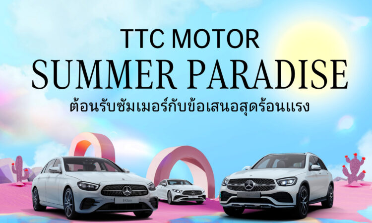 TTC Motor จัดแคมเปญรับอุณหภูมิร้อนแรงของอากาศ และความต้องการของผู้บริโภค กับแคมเปญ SUMMERPARADISE ที่มอบข้อเสนอพิเศษ MBSP Extra Guarantee นานสูงสุด 8 ปี ดอกเบี้ย 0% นานสูงสุด 4 ปี พร้อมประกันภัยชั้นหนึ่งนานสูงสุด 1 ปี MBSP Extra Guarantee นานสูงสุด 5 ปี พร้อม MB Protection นานสูงสุด 2 ปี ที่ TTC Motor ครบจบทุกเรื่องเบนซ์ ตั้งแต่วันนี้-30 เมษายน 2566 *เงื่อนไขเฉพาะรุ่นที่ร่วมรายการ