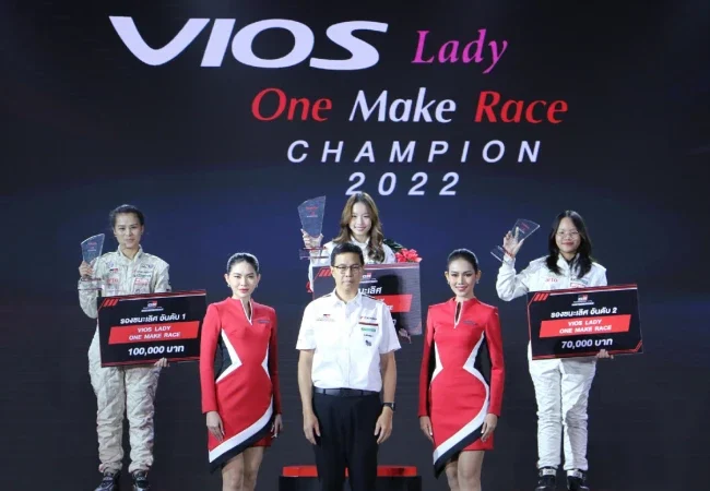 มร.ยามาชิตะ กล่าวต่อไปว่า “ที่สำคัญ เรายินดีที่จะแนะนำ “Yaris Ativ Lady One Make Race” ที่จะมาแทนที่รุ่น Vios One Make Race และยาริส รุ่นปรับปรุงโฉมใหม่ ทั้งสองรุ่นเป็นรถเครื่องยนต์ขนาด 1.2 ลิตร ที่จะแสดงให้เห็นถึงสมรรถนะ การประหยัดเชื้อเพลิง ความคงทน และคุณภาพ นอกจากนั้น เพื่อย้ำเน้นจุดยืนเพื่อความเป็นกลางทางคาร์บอน เราขอเปิดตัวรถ 3 รุ่น ที่ล้วนใช้เชื้อเพลิงที่ความเป็นกลางทางคาร์บอน ได้แก่ Yaris e-fuel ที่จะลงเข้าร่วมรายการ Thailand Super Series รวมถึง Toyota 86 และ Altis e-fuel ที่จะเข้าร่วมรายการ Idemitsu Super Endurance ซึ่ง Yaris e-fuel จะเข้าร่วมรายการ Yaris One Make Race ด้วย โดยนักแข่งที่คว้าชัยชนะจากโครงการ 2022 Dream Racer ซึ่งเป็นโครงการเพื่อสร้างนักแข่งรถรุ่นใหม่ พร้อมปลูกฝังวัฒนธรรมกีฬามอเตอร์สปอร์ต”