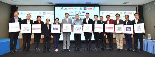นายนันทวัฒน์ ศรีวรัตน์อัชกุล ผู้ช่วยกรรมการผู้จัดการใหญ่ บริษัท โตโยต้า มอเตอร์ ประเทศไทย จำกัด พร้อมด้วย นายสนั่น อังอุบลกุล ประธานกรรมการหอการค้าไทย และสภาหอการค้าแห่งประเทศไทย นายพลิษศร์ ภิรมย์ภักดี รองประธานกรรมการหอการค้าไทย และประธานคณะกรรมการเพิ่มความเข้มแข็งให้สมาชิก นายปิยะวัฒน์ ฐิตะสัทธาวรกุล กรรมการบริหารหอการค้าไทย และรองประธานกรรมการบริหาร บริษัท ซีพี ออลล์ จํากัด (มหาชน) ร่วมลงนามบันทึกข้อตกลงความร่วมมือโครงการ “Business Accelerator” ระหว่าง หอการค้าไทย และ 4 บริษัทพันธมิตร ร่วมพัฒนาศักยภาพ ถ่ายทอดองค์ความรู้ และประสบการณ์ทางธุรกิจ เพื่อเตรียมความพร้อมผู้ประกอบการ SMEs สู่ช่องทางขายกับ Modern trade เมื่อวันที่ 6 มิถุนายน ที่ผ่านมา ณ สภาหอการค้าไทย