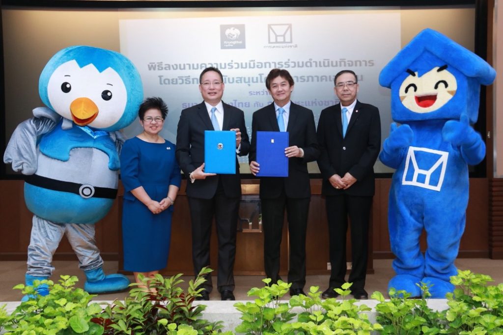 การเคหะแห่งชาติ (กคช.) ร่วมกับธนาคารกรุงไทยจัดพิธีลงนามความร่วมมือการร่วมดำเนินกิจการโดยวิธีการสนับสนุนโครงการภาคเอกชนโดยมี นายผยง ศรีวณิช กรรมการผู้จัดการใหญ่ ธนาคารกรุงไทย และ ดร.ธัชพลกาญจนกูล ผู้ว่าการการเคหะแห่งชาติ ร่วมลงนามในบันทึกข้อตกลงดังกล่าว เพื่อสนับสนุนให้ผู้ประกอบการภาคเอกชนได้มีแหล่งเงินกู้พัฒนาโครงการที่อยู่อาศัย ซึ่งการเคหะแห่งชาติจะเป็นที่ปรึกษาในการจัดทำโครงการฯ เมื่อวันที่ 13 กันยายน 2561 ณ ห้องวทัญญู ณ ถลาง สำนักงานใหญ่ การเคหะแห่งชาติ