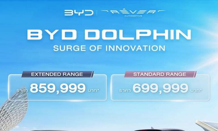 บริษัท เรเว่ ออโตโมทีฟ จํากัด ผู้จัดจำหน่ายและให้บริการหลังการขายรถยนต์พลังงานไฟฟ้า BYD ในประเทศไทยอย่างเป็นทางการ ภายหลังจากความสำเร็จในการแนะนำรถยนต์พลังงานไฟฟ้ารุ่นแรก BYD ATTO 3 สู่ประเทศไทย ประกาศเปิดตัวรถยนต์พลังงานไฟฟ้า BYD Dolphin เพิ่มเติมให้เลือกอีก 2 รุ่นย่อย ประสบการณ์ใหม่ของการขับขี่ ดีไซน์โฉบเฉี่ยว คล่องตัว ภายในกว้างขวางพร้อมฟังก์ชันครบครัน รถยนต์แฮตช์แบ็กพลังงานไฟฟ้ารุ่นล่าสุดของตระกูล BYD มาพร้อมเทคโนโลยี e-Platform 3.0 แพลตฟอร์มที่ออกแบบให้รถมีความสมดุลพร้อมเทคโนโลยี BYD Blade Battery เอกสิทธิ์เฉพาะของบีวายดีที่สามารถจัดเก็บพลังงานและให้ระยะการขับเคลื่อนสูง อีกทั้งยังมาพร้อมระบบรักษาความปลอดภัยอัจฉริยะ (ADAS) เพื่อความปลอดภัยสูงสุดขณะอยู่บนท้องถนน