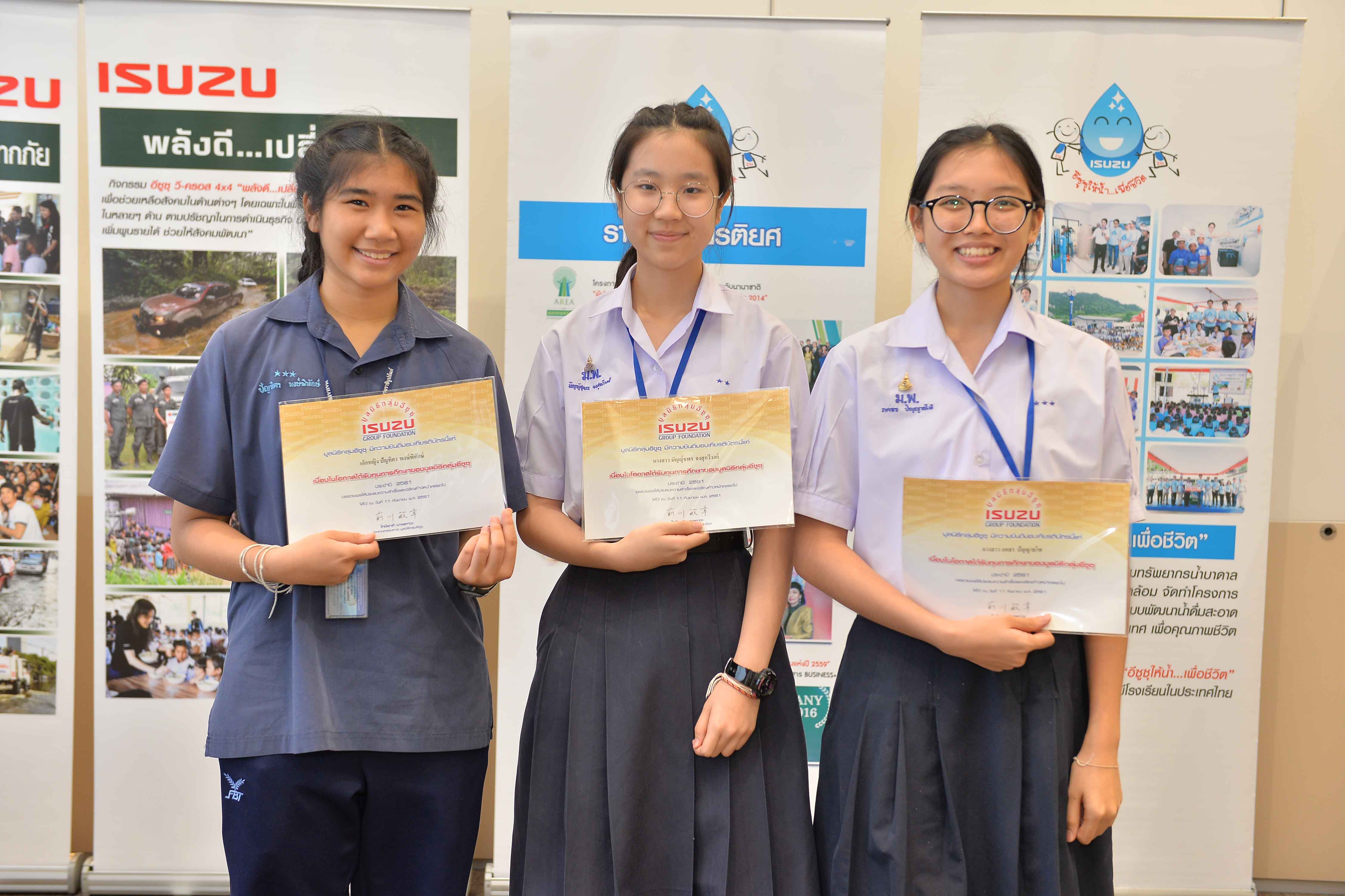สำหรับพิธีมอบทุนการศึกษาของมูลนิธิกลุ่มอีซูซุในปีนี้ ได้คัดเลือกเยาวชนที่มีผลการเรียนดี มีความวิริยะอุตสาหะด้านการศึกษา แต่ขาดแคลนทุนทรัพย์ ในระดับมัธยมศึกษา อาชีวศึกษา และอุดมศึกษา จากสถาบันการศึกษาทั่วประเทศ จำนวน 595 คน รวมมูลค่าทั้งสิ้น 4,061,000 บาท เพื่อให้เยาวชนนำทุนดังกล่าวไปใช้พัฒนาคุณภาพการศึกษาของตนเอง ถือเป็นสิ่งที่ภาคเอกชนสามารถมีส่วนร่วมในการพัฒนาคุณภาพชีวิตให้แก่สมาชิกในสังคมไทย ซึ่งกลุ่มอีซูซุได้ยึดถือนโยบายนี้เพื่อคืนกำไรสู่สังคมอย่างต่อเนื่องจนก้าวสู่ปีที่ 31