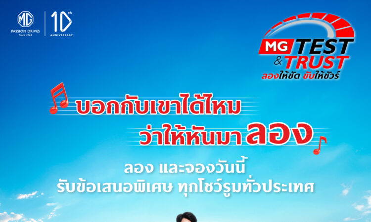 บริษัท เอสเอไอซี มอเตอร์ – ซีพี จำกัด และ บริษัท เอ็มจี เซลส์ (ประเทศไทย) จำกัด ผู้ผลิตและผู้จำหน่ายรถยนต์เอ็มจีในประเทศไทย จัดแคมเปญ ‘MG TEST & TRUST ลองให้ชัด ขับให้ชัวร์’ ชวนผู้ที่สนใจมาลองพิสูจน์ทุกข้อสงสัยกับรถยนต์ เอ็มจี ด้วยประสบการณ์ตรงกับยนตรกรรมมาตรฐานระดับโลกในราคาเอื้อมถึงได้ ตอกย้ำให้เห็นถึงความจริงจังในการเดินหน้าแนวทางการยกระดับธุรกิจด้วย Customer Centric มุ่งเข้าใจและเข้าถึงทุกความต้องการของผู้บริโภค พร้อมรับโปรโมชันพิเศษเมื่อทดสอบและจองรถตั้งแต่วันนี้ เป็นต้นไป