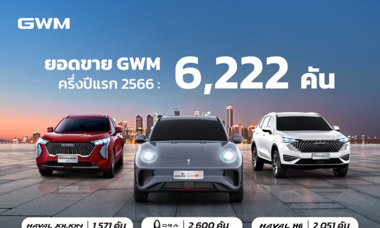 เกรท วอลล์ มอเตอร์ ประกาศความสำเร็จครึ่งปีแรก 2566 ด้วยยอดขายและส่งมอบรถยนต์พลังงานไฟฟ้าอัจฉริยะทั้ง 5 รุ่นที่จำหน่ายในประเทศไทย ได้แก่ New HAVAL H6 Hybrid SUV, HAVAL H6 Plug-in Hybrid SUV, HAVAL JOLION Hybrid SUV, ORA Good Cat และ ORA Good Cat GT รวมทั้งสิ้น 6,222 คัน นำโดยเจ้าเหมียวไฟฟ้า ORA Good Cat ที่มีกระแสการตอบรับและสนับสนุนจากลูกค้าชาวไทยอย่างต่อเนื่องด้วยยอดขาย 2,600 คัน ตามมาด้วย HAVAL H6 ที่ 2,051 คัน และเจ้าสิงโตอารมณ์ดี HAVAL JOLION 1,571 คัน สะท้อนกระแสความนิยมรถยนต์พลังงานใหม่ที่เติบโตอย่างต่อเนื่อง พร้อมตอกย้ำความเชื่อมั่นและการสนับสนุนจากผู้บริโภคที่มอบให้กับ เกรท วอลล์ มอเตอร์ ซึ่งมุ่งมั่นก้าวขึ้นเป็นผู้นำด้านยานยนต์ไฟฟ้า (xEV) ที่พร้อมขับเคลื่อนระบบนิเวศยานยนต์ไฟฟ้าในประเทศไทยให้ก้าวสู่สังคมพลังงานสีเขียวอย่างครบวงจร