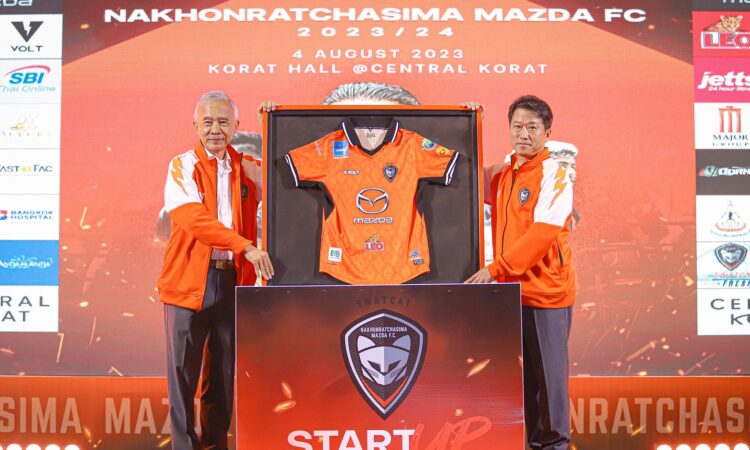 ทางด้านผู้สนับสนุนหลักอย่างเป็นทางการ มร. ทาดาชิ มิอุระ ประธานบริหาร บริษัท มาสด้า เซลส์ (ประเทศไทย) จำกัด กล่าวว่า มาสด้าให้ความสำคัญอย่างยิ่งต่อการพัฒนาวงการฟุตบอลไทย ด้วยการเข้ามาสนับสนุนฟุตบอลทีมสวาทแคท หรือ นครราชสีมา มาสด้า เอฟซี เมื่อ 11 ปีที่แล้ว ส่งผลให้วงการฟุตบอลไทยคึกคักทันตาเห็น โดยเฉพาะจำนวนแฟนบอลที่หลั่งไหลเข้าชมการแข่งขัน วันนี้ทีมสวาทแคทยังคงครองสถิติอันดับหนึ่งที่มีผู้เข้าชมมากที่สุดในไทยลีก ที่สำคัญ มาสด้ายังคงให้การสนับสนุนทีมสวาทแคทอย่างต่อเนื่องเช่นเดียวกับทุกปีที่ผ่านมา วันนี้ทุกคนต้องร่วมแรงร่วมใจกันลุกขึ้นสู้อีกครั้ง เพื่อก้าวขึ้นสู่ลีกสูงสุดของประเทศให้เร็วที่สุด ทุกคนต้องศรัทธาและเชื่อมั่นในสปิริตความเป็นนักสู้ของทีม ซึ่งมี DNA เช่นเดียวกับชาวมาสด้า เราไม่เคยยอมแพ้ต่ออุปสรรค เราเชื่อมั่นในสปิริตความเป็นนักสู้ เราฝ่าฟันอุปสรรคต่างๆ มามากมายกว่า 100 ปี และอยู่เคียงข้างคนไทยมา 73 ปี และเราจะยังคงอยู่เคียงข้างคนไทยตลอดไป