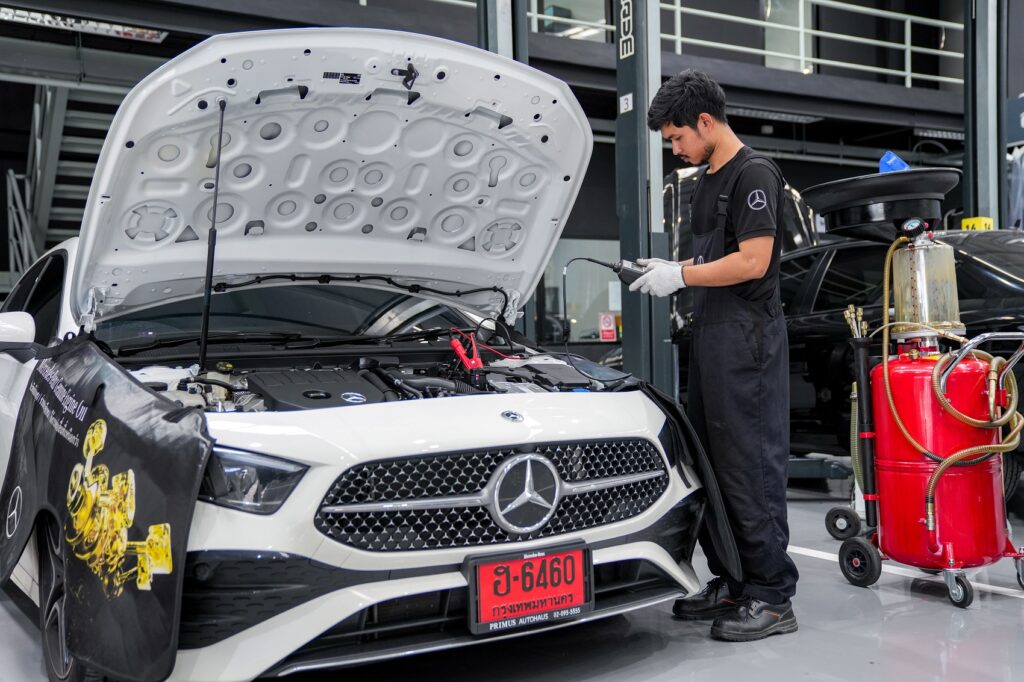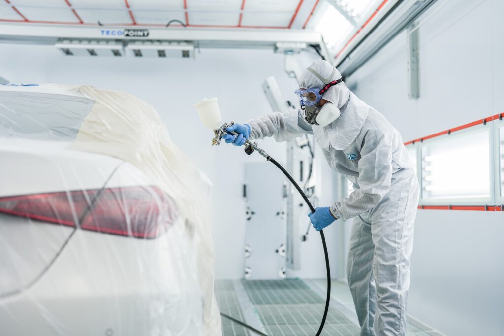 ภายในห้องพ่นอบสีที่มีอุณหภูมิคงที่ พร้อมเลือกผลิตภัณฑ์สีน้ำ คุณภาพมาตรฐานระดับนานาชาติ และเป็นมิตรกับสิ่งแวดล้อม รองรับงานซ่อมสี และตัวถัง เดือนละ 150 คัน ให้บริการทั้งการซ่อมงานหนักและงานเบา พร้อมรับงานซ่อมจากบริษัทประกันทุกแห่ง ด้วยทีมงานระดับมืออาชีพที่มีความรู้และความชำนาญด้านงานสีและตัวถังกว่า 20 ปี ทั้งผ่านมาตรการการฝึกอบรมจาก Mercedes-Benz ในระดับสูง ทำให้มั่นใจว่า ทุกงานซ่อมสีและตัวถังจะได้มาตรฐานและคุณภาพที่สร้างความพึงพอใจให้แก่ลูกค้าทุกท่านอย่างแน่นอน