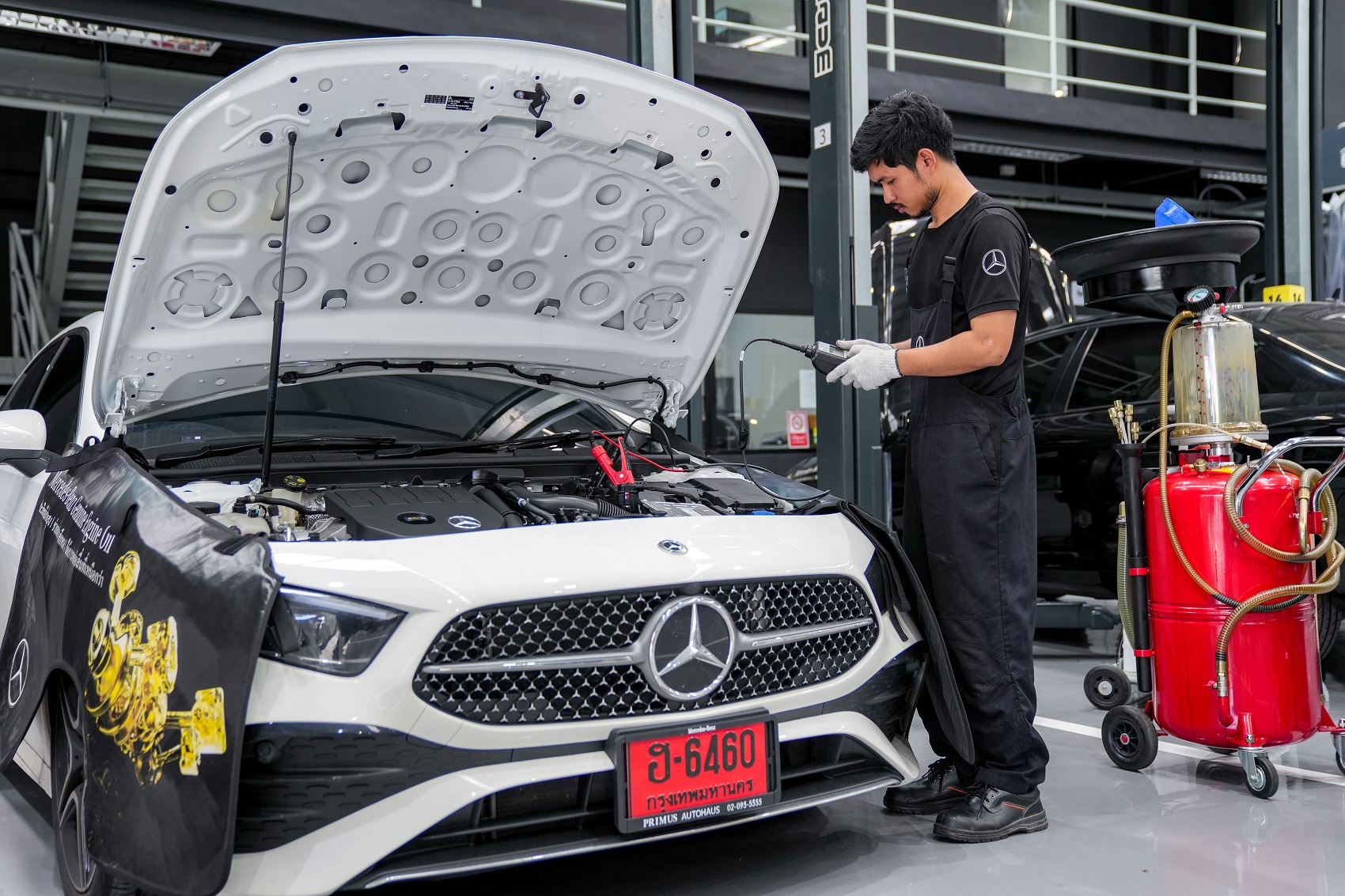 ส่วนอาคารด้านหลัง เป็นศูนย์บริการมาตรฐานครบวงจร โดยรองรับการบริการซ่อมแซม การบำรุง และการดูแลรักษารถยนต์ Mercedes-Benz ทุกซัพแบรนด์ และทุกรุ่น ด้วยบริการที่มีเปี่ยมประสิทธิภาพ และบุคลากรที่มีคุณภาพ และความชำนาญ โดยผ่านมาตรฐานการฝึกอบรมหลักสูตรระดับสูงของ Mercedes-Benz พร้อมเครื่องมืออุปกรณ์ทันสมัย สำหรับรองรับทุกงานบริการที่ตอบโจทย์ความต้องการของลูกค้าอย่างแท้จริง
