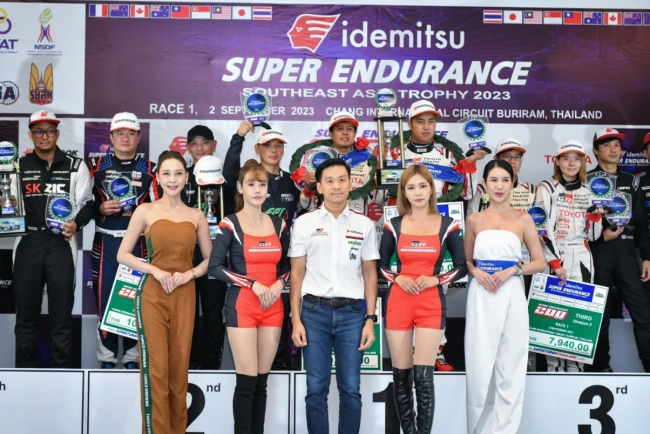 Toyota Gazoo Racing Team Thailand ทีมแข่งรถสุดแกร่งดีกรีแชมป์โลก 4 สมัย ในการแข่งขันรถยนต์มาราธอนระดับโลก 24 ชม.นูร์เบอร์กริง ภายใต้การสนับสนุนของ บริษัท โตโยต้า มอเตอร์ ประเทศไทย จำกัด สร้างผลงานยอดเยี่ยมอีกครั้ง ด้วยการจัดทีมนักแข่งชุดใหญ่ลงร่วมการแข่งขัน “IDEMITSU SUPER ENDURANCE SOUTHEAST ASIA TROPHY 2023” ประเดิม 2 เรซ เปิดฤดูกาลจัดรถแข่งตัวฉกาจ และรถรุ่นใหม่ ไฮไลต์กับ 2 รถแข่ง e-fuel รถยนต์พลังงานสะอาดที่พัฒนาอย่างต่อเนื่องลงสู้ศึกความอึด ท็อปฟอร์มรับธงหมากรุกคว้าอันดับ 1-2-3-4-5 ยึดโพเดียมแบบ Overall และแชมป์อันดับ 1 รุ่น D2 – D3 และ Lady One Make Race เมื่อวันที่ 2-3 กันยายน ที่ผ่านมา ณ สนามช้าง อินเตอร์เนชั่นแนล เซอร์กิต บุรีรัมย์