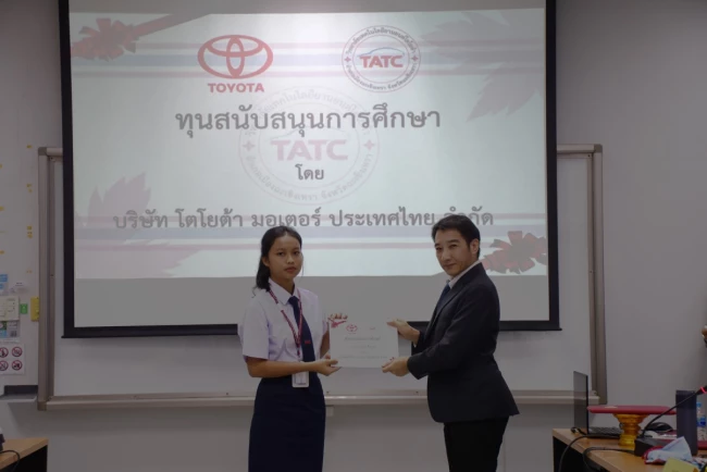 วิทยาลัยเทคโนโลยียานยนต์โตโยต้า สร้างโอกาสทางการศึกษา พัฒนาคุณภาพชีวิตของเยาวชนให้เป็นบุคลากรที่มีคุณภาพ ผ่านกิจกรรมมอบทุนการศึกษา ประจำปี 2566 ให้กับนักศึกษาจำนวน 26 คน เมื่อวันที่ 30 สิงหาคม ที่ผ่านมา ณ ห้องประชุมอาคารวิทยาลัยเทคโนโลยียานยนต์โตโยต้า โดยมีผู้สนับสนุนทุนการศึกษา ได้แก่