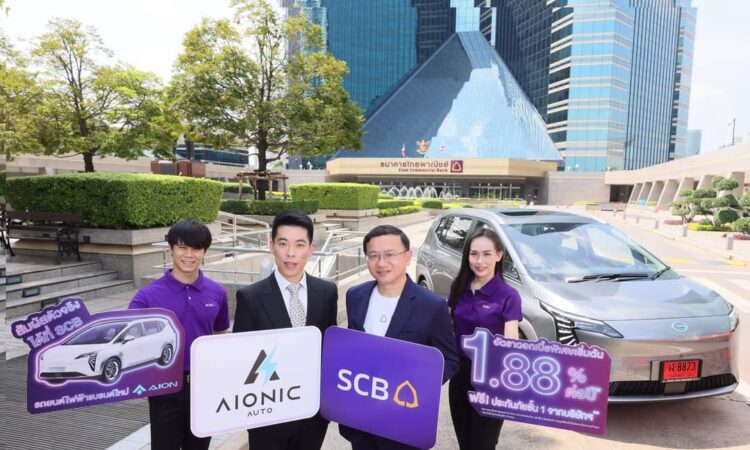 บริษัท เอไอโอนิค ออโต จำกัด ในเครือชาริช โฮลดิ้ง ตัวแทนจำหน่ายรายใหญ่และให้บริการหลังการขายรถยนต์ไฟฟ้า 100% แบรนด์ GAC AION อย่างเป็นทางการในประเทศไทย นำโดย นายอภิชาติ ลีนุตพงษ์ ประธานกรรมการ บริษัท เอไอโอนิค ออโต จำกัด พร้อมด้วย นายสักวัฏ อิทธิสวัสดิ์ ผู้ช่วยผู้จัดการใหญ่ ผู้บริหารสายงาน Direct Sales Channels ธนาคารไทยพาณิชย์ เดินหน้าผลักดันและสนับสนุนนโยบายความยั่งยืน จัดงาน Aionic Auto Test Drive Day – Experience the E-SUV เปิดประสบการณ์ทดลองขับ Aion Y Plus รถยนต์ไฟฟ้า 100 % ในรูปแบบ E-SUV (Electric Smart Utilities Vehicle) ดีไซน์สุดล้ำแห่งอนาคต ที่จะเปลี่ยนการเดินทางให้เต็มไปด้วยความประทับใจตลอดเส้นทาง พร้อมมอบข้อเสนอสุดพิเศษ ดอกเบี้ย 1.88% ต่อปี แถมฟรี!! ประกันภัยชั้น 1 โดยกิจกรรมดังกล่าวจัดขึ้นระหว่างวันที่ 25-29 กันยายน นี้ เวลา 09.00 – 17.00 น. ณ SCB สำนักงานใหญ่