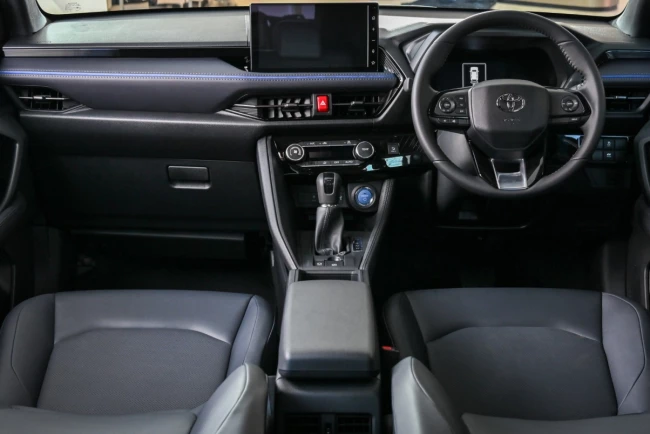 เน้นภาพรวมห้องโดยสารกว้างขวาง สบายตา โดยใช้หลักเส้นนำสายตาที่เป็นเส้นตรงลากยาวบริเวณคอนโซลด้านหน้า เสริมดีกรีความสปอร์ตด้วยการออกแบบที่นั่งฝั่งผู้ขับขี่ให้มีดีไซน์แบบ “Driver-Oriented Cockpit” เพิ่มความพรีเมียมด้วยการตกแต่งภายในด้วยวัสดุบุนุ่ม วัสดุหุ้มเบาะนั่ง พร้อมเทคโนโลยี “QUOLE MODULE ” ช่วยลดการสะสมความร้อนบนผิวสัมผัส ไฟสร้างบรรยากาศภายในห้องโดยสารปรับได้ 14 เฉดสี ปรับความสว่างได้ 4 ระดับ และหน้าจอแสดงผลข้อมูลการขับขี่แบบดิจิตอลขนาด 7 นิ้ว