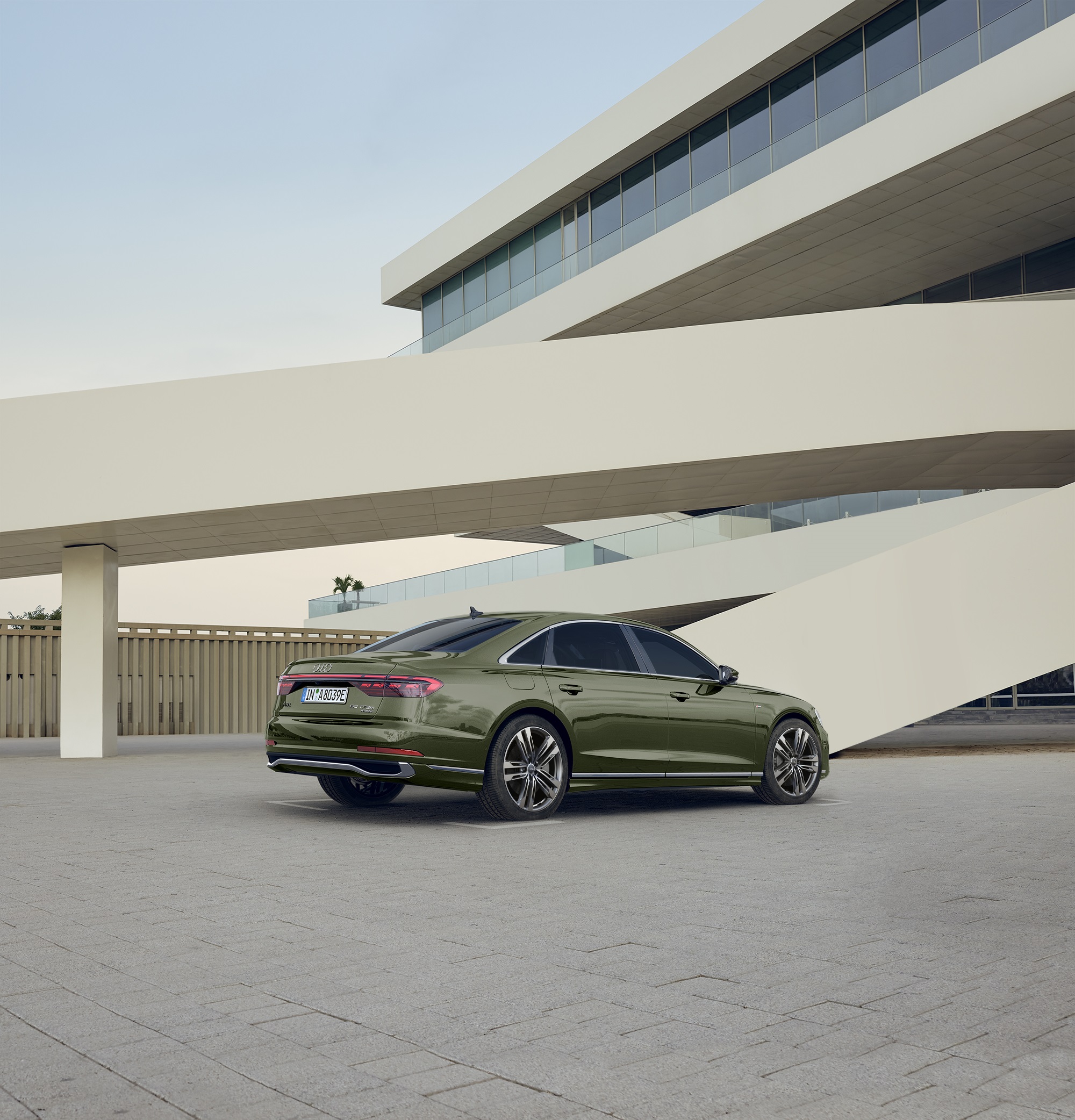 สัมผัสประสบการณ์การเดินทางแบบ First Class กับ Audi A8 L TFSI e ซีดานปลั๊กอินไฮบริดสุดหรู ดีไซน์โดดเด่น สปอร์ตพรีเมียม ทรงพลัง สง่างามเหนือระดับ พร้อมเทคโนโลยีระบบไฟฟ้าขั้นสูง เพียบพร้อมไปด้วยฟังก์ชันนวัตกรรมระดับไฮเอนด์อย่างครบครัน ภายในห้องโดยสารสร้างประสบการณ์อันไร้ที่ติในทุกการเดินทาง ที่เพิ่มความสะดวกสบายผ่อนคลายมากยิ่งขึ้น สามารถควบคุมการใช้งานภายในรถได้จากด้านหลังด้วยหน้าจอส่วนตัวพร้อมจอ OLED แบบสัมผัสขนาด 5.7 นิ้ว เบาะหลังแยกซ้ายขวาออกจากกันให้ความเป็นส่วนตัว พร้อมที่พักเท้าแบบอุ่นร้อนและฟังก์ชันนวดเท้า หลังคาพาโนรามิคเลื่อนเปิด-ปิดด้วยระบบไฟฟ้า ม่านบังแดดปรับไฟฟ้าสำหรับกระจกด้านหลังและกระจกข้างด้านหลังเพื่อเพิ่มความเป็นส่วนตัว ไฟอ่านหนังสือภายในแบบ Matrix LED เพื่อความสะดวกสบายในการมองเห็นภายในรถ
