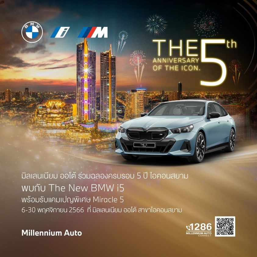 มิลเลนเนียม ออโต้ กรุ๊ป ร่วมฉลองครบรอบ 5 ปี ศูนย์การค้าไอคอนสยาม อีกหนึ่งแลนด์มาร์คสำคัญของกรุงเทพฯ กับแคมเปญ MIRACLE 5 ที่มอบหลากหลายสิทธิพิเศษให้กับลูกค้าที่จองและรับรถยนต์ บีเอ็มดับเบิลยู i5 และรุ่นอื่นๆ ภายในงาน